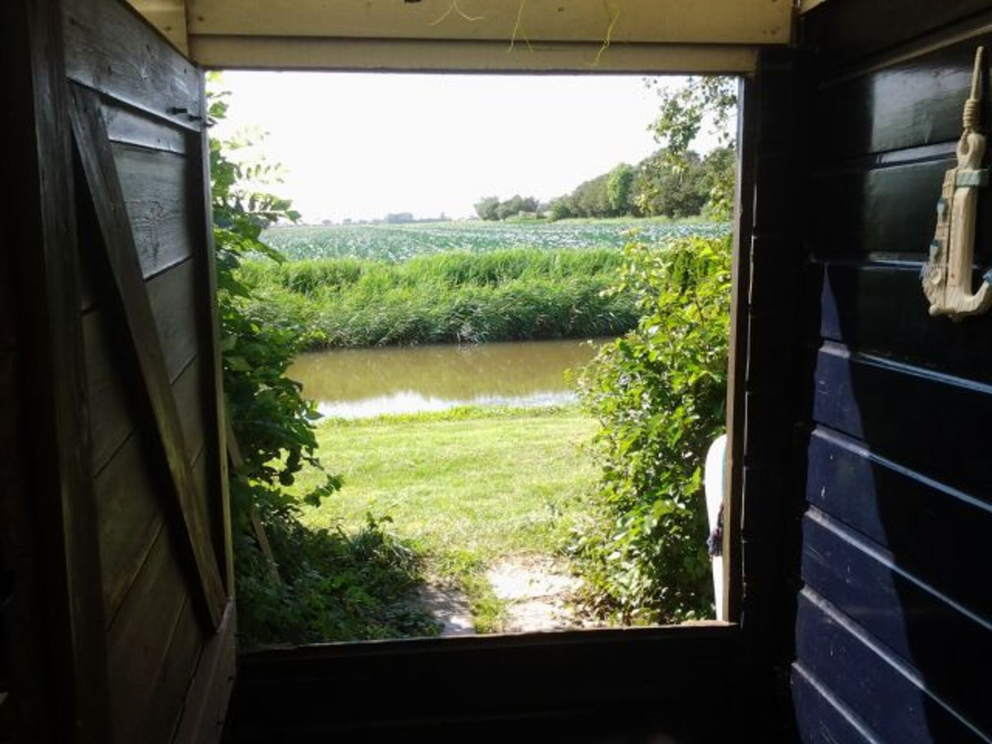 Das Haus liegt am Parkrand mit direktem (verschließbarem) Zugang zu einer Gracht, die den Park begrenzt. Freier Blick auf die Felder der Polderlandschaft.