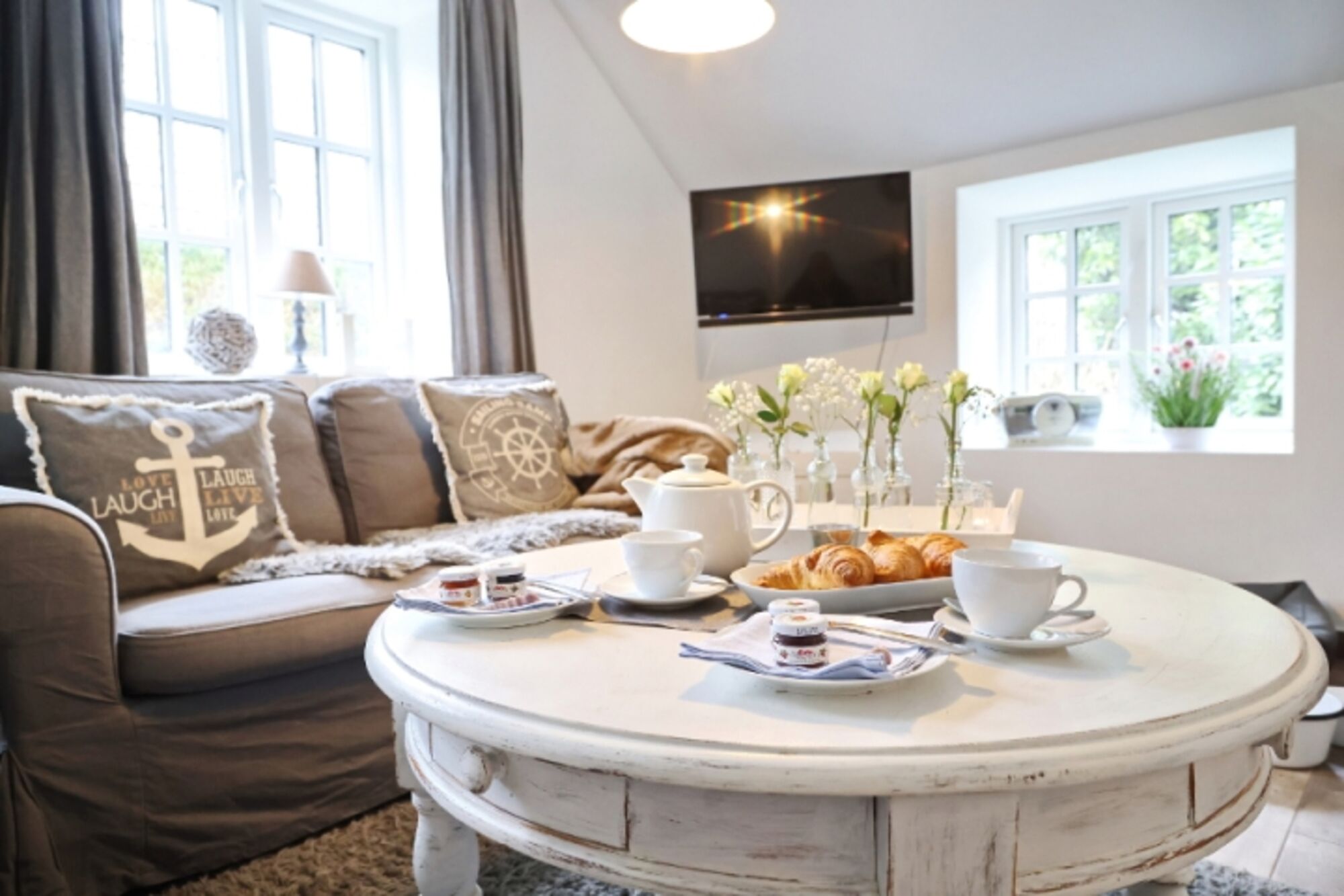 Wir haben unsere typisch norddeutsche Kate für sie im Shabby Landhausstil konzipiert.