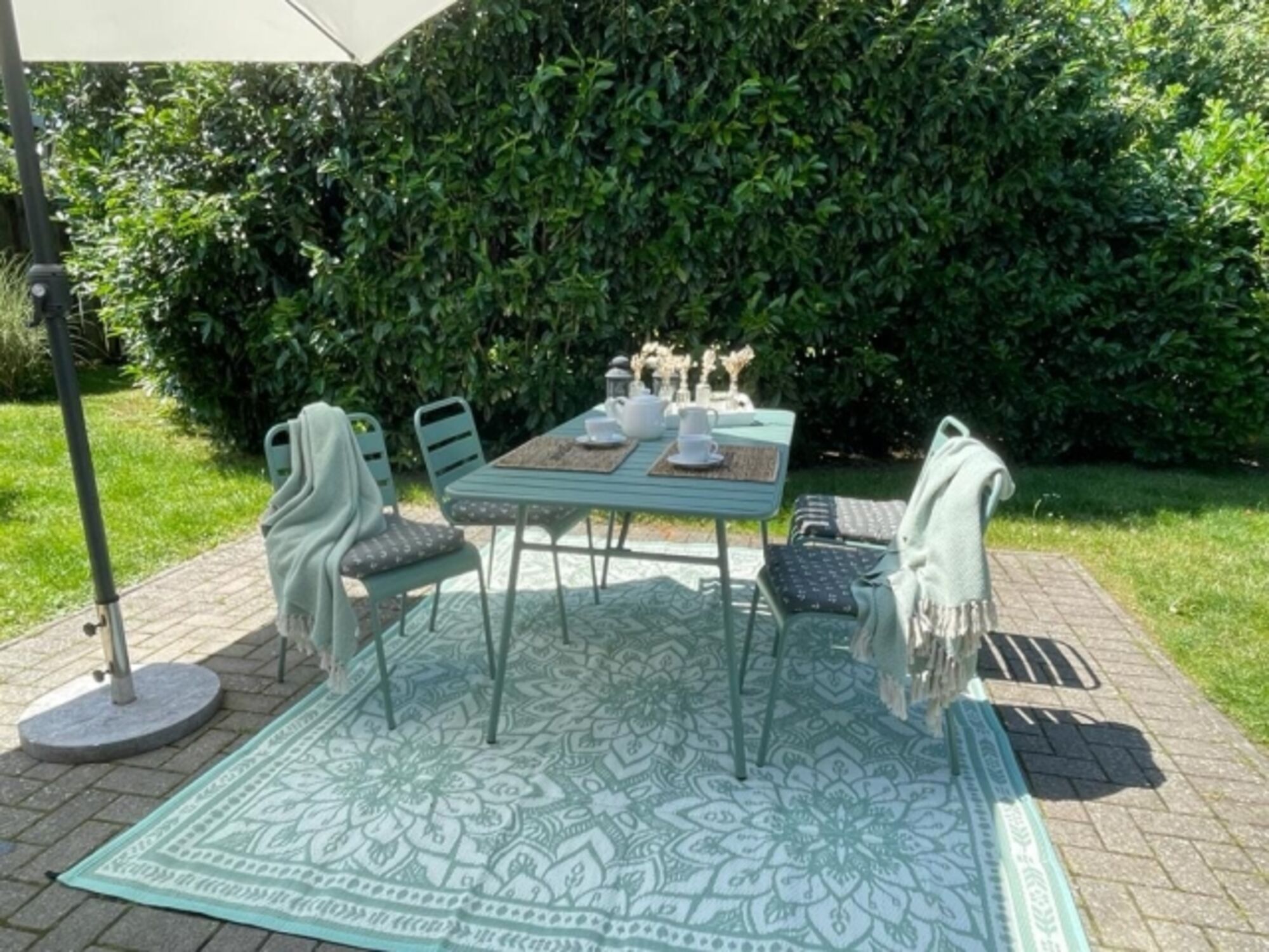 Grill und Gartenmöbel stehen witterungsbedingt nur bei schönem Wetter zur Verfügung