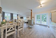 Offener Koch - und Eßbereich mit Zugang zum Garten