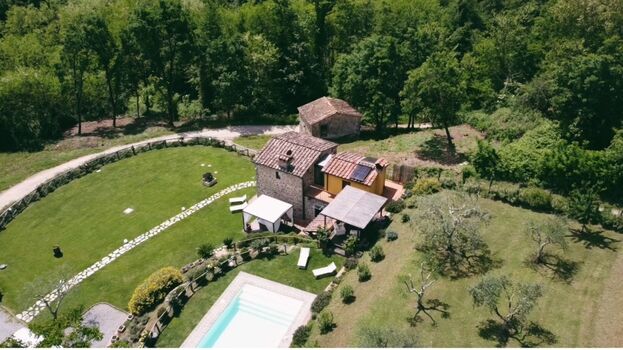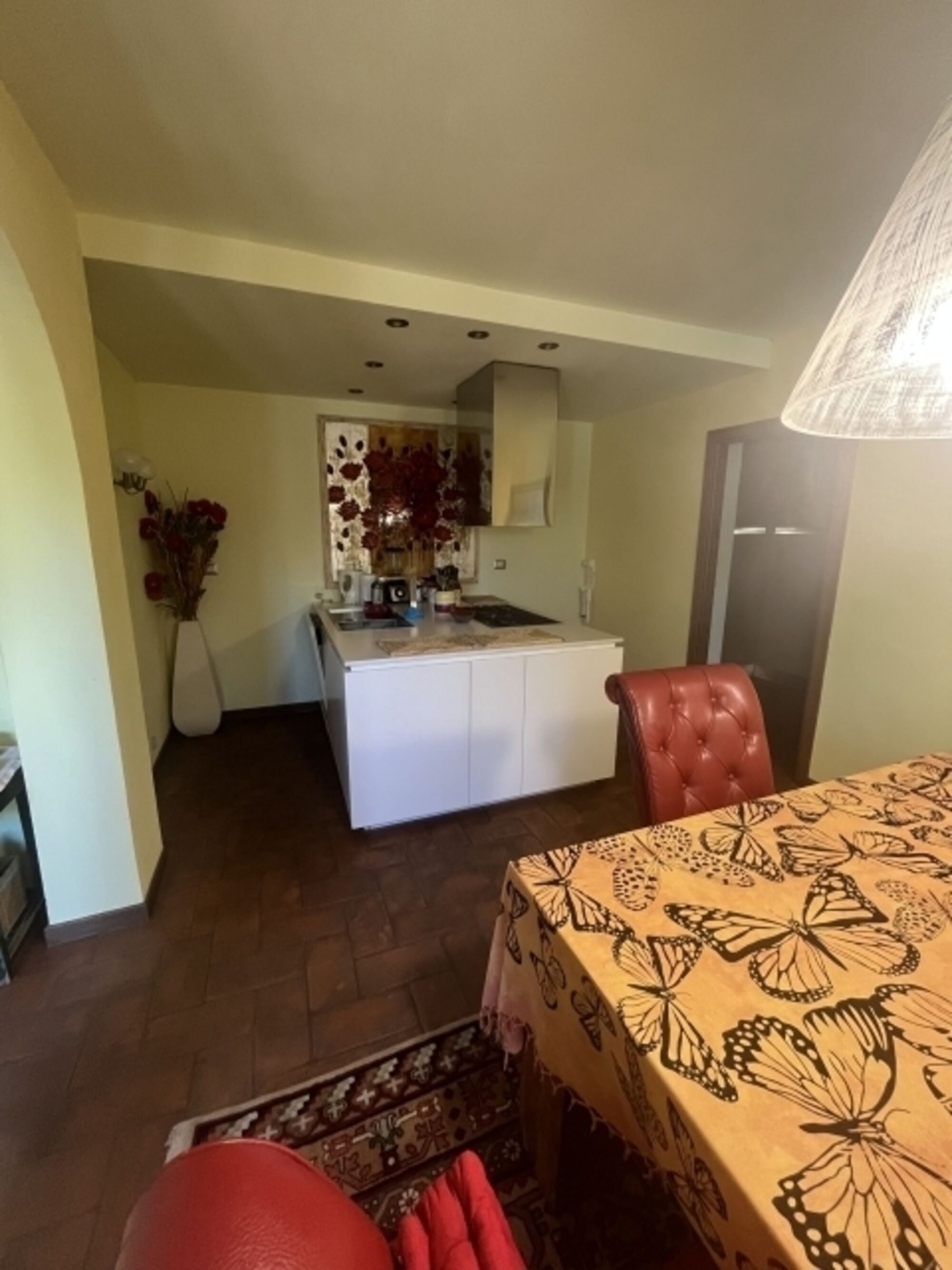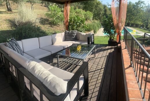 Das Haus bietet einen ruhigen Landurlaub. Im Erdgeschoss befindet sich ein Wohnzimmer mit Sitzgelegenheiten und Satelliten Fernseher (großer Fernseher). Ein großer Kamin vollendet eine typisch toskanische Atmosphäre (der Kamin ist nur Deko). Weiterhin steht befindet sich hier ein kleines, komfortables Badezimmer mit Dusche.