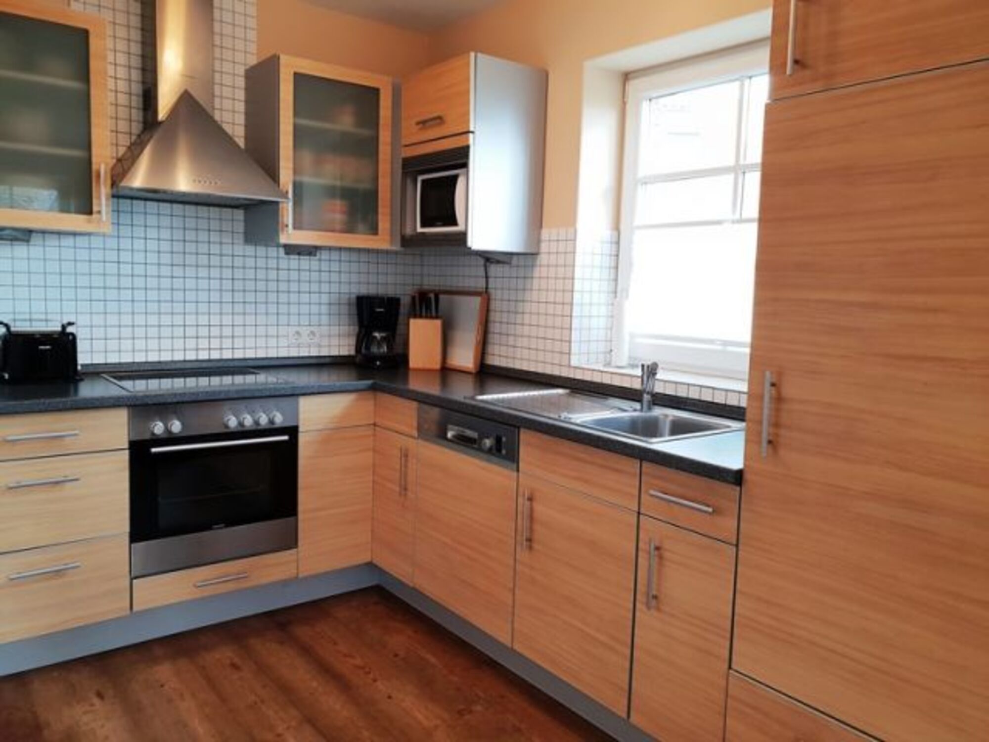 Küche: Mikrowelle, Cerankochfeld, Kaffeemaschine, Geschirrspüler, Kühlschrank, Gefrierfach, Backofen, Wasserkocher, Dunstabzugshaube