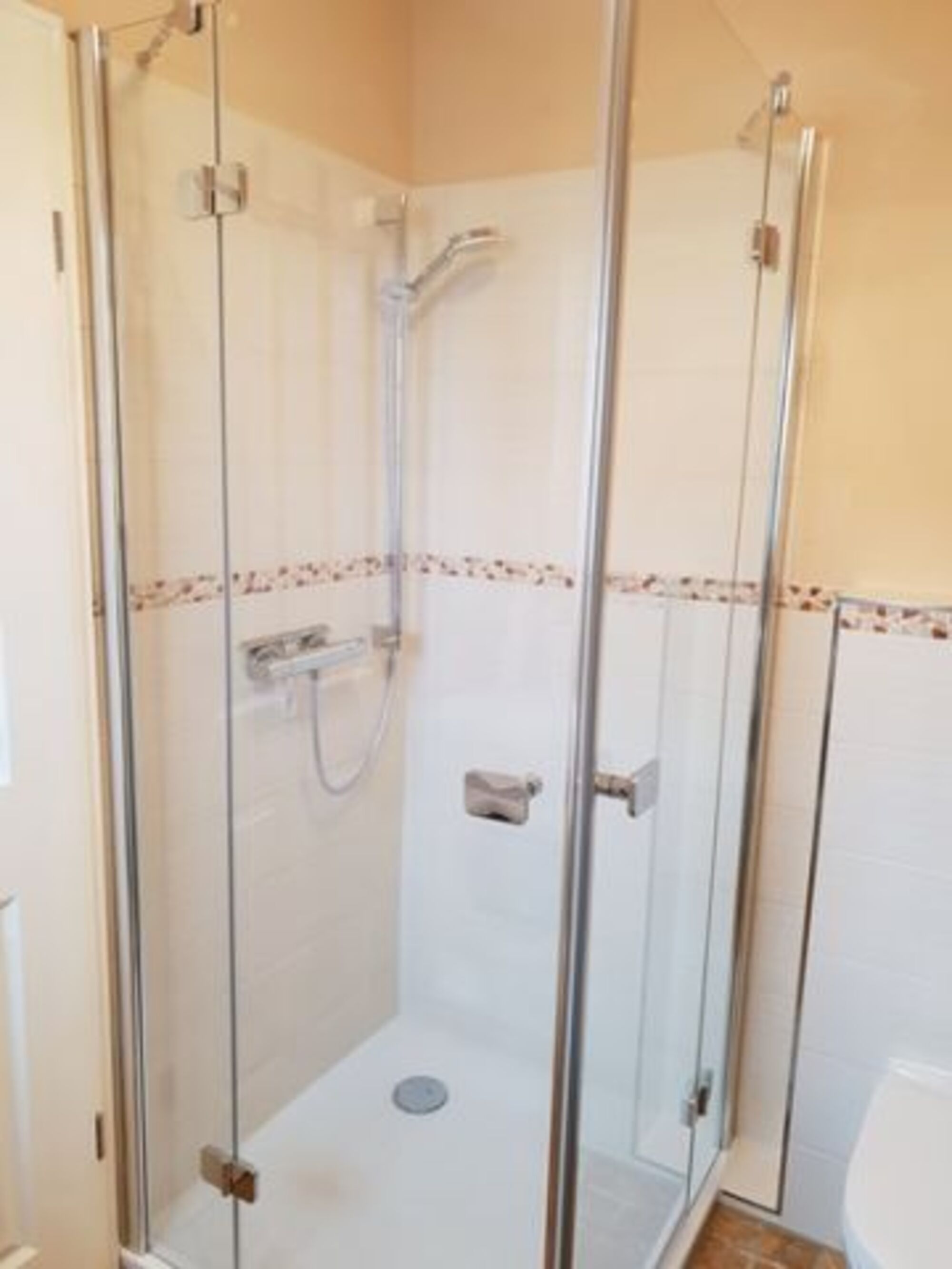 Bad unten: Dusche, Waschmaschine, Fußbodenheizung