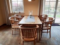 Zusatzausstattung: Waschmaschine, WLAN, Sauna, Kaminofen, Stereoanlage (Radio/CD-Player), Flachbildschirm-Fernseher, SAT-TV, Sky-TV, Hochstuhl, Kinderreisebett mit separater Matratze, Bücher, Spiele