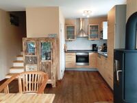 Cerankochfeld, Dunstabzugshaube, Kühlschrank mit Gefrierfach, Korkenzieher / Flaschenöffner, Essplatz in der Küche