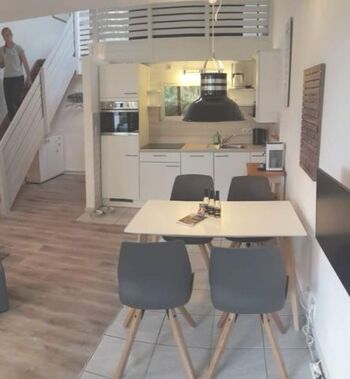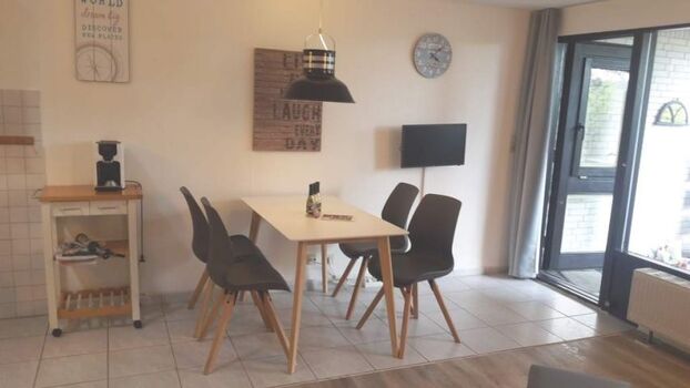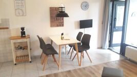 Ein gemütliches Wohnzimmer mit neuer Küche und ein schnuckeliges Badezimmer mit Dusche runden Ihr Reich für Ihren Urlaub ab. Die Wohnung hat eine eigene Terrasse und Terrassenmöbel. Ihre Hund können Sie an der Leine an der Terrasse anbinden .