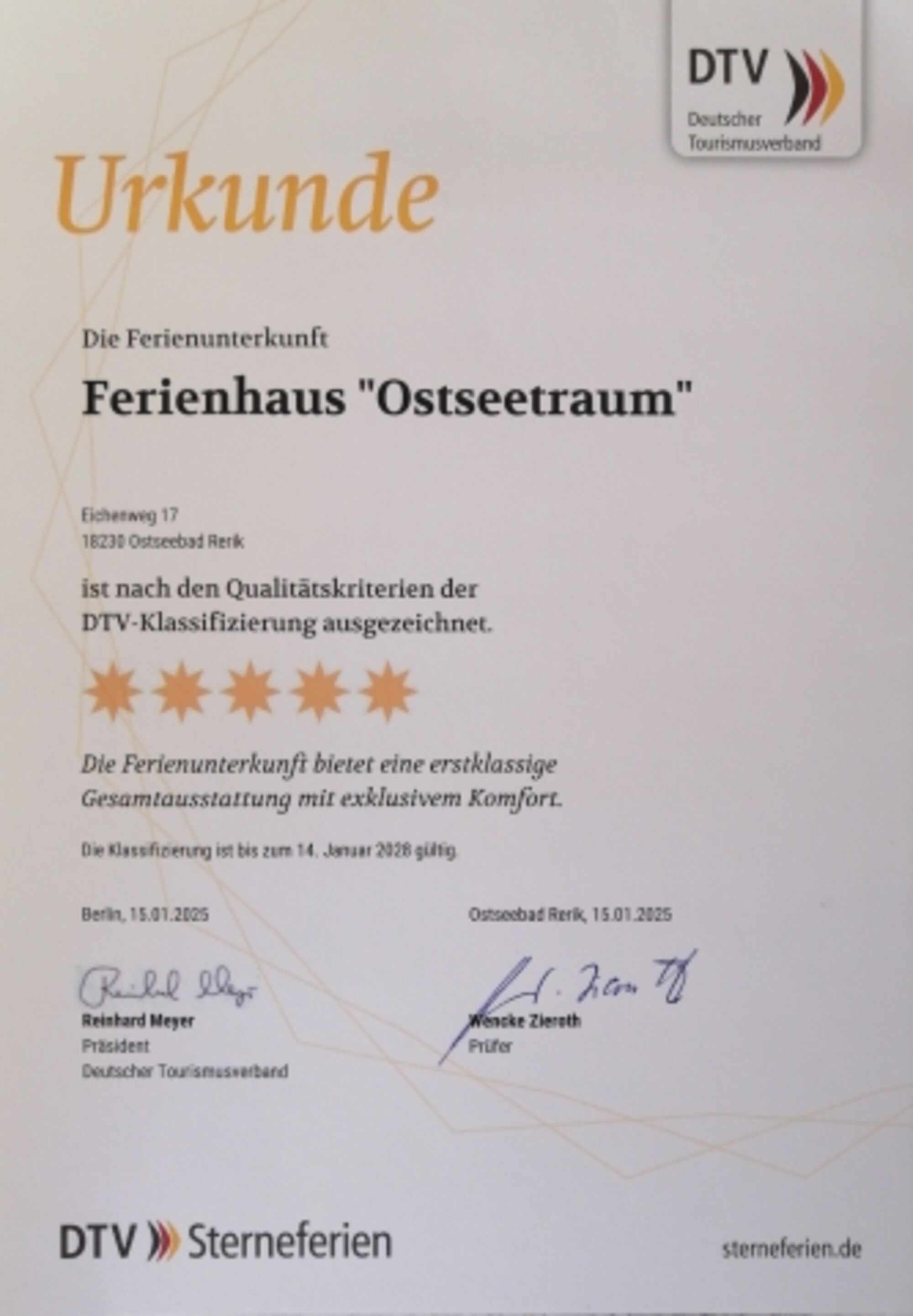 Ferienhaus Ostseetraum in Rerik Sterne nach DTV: F