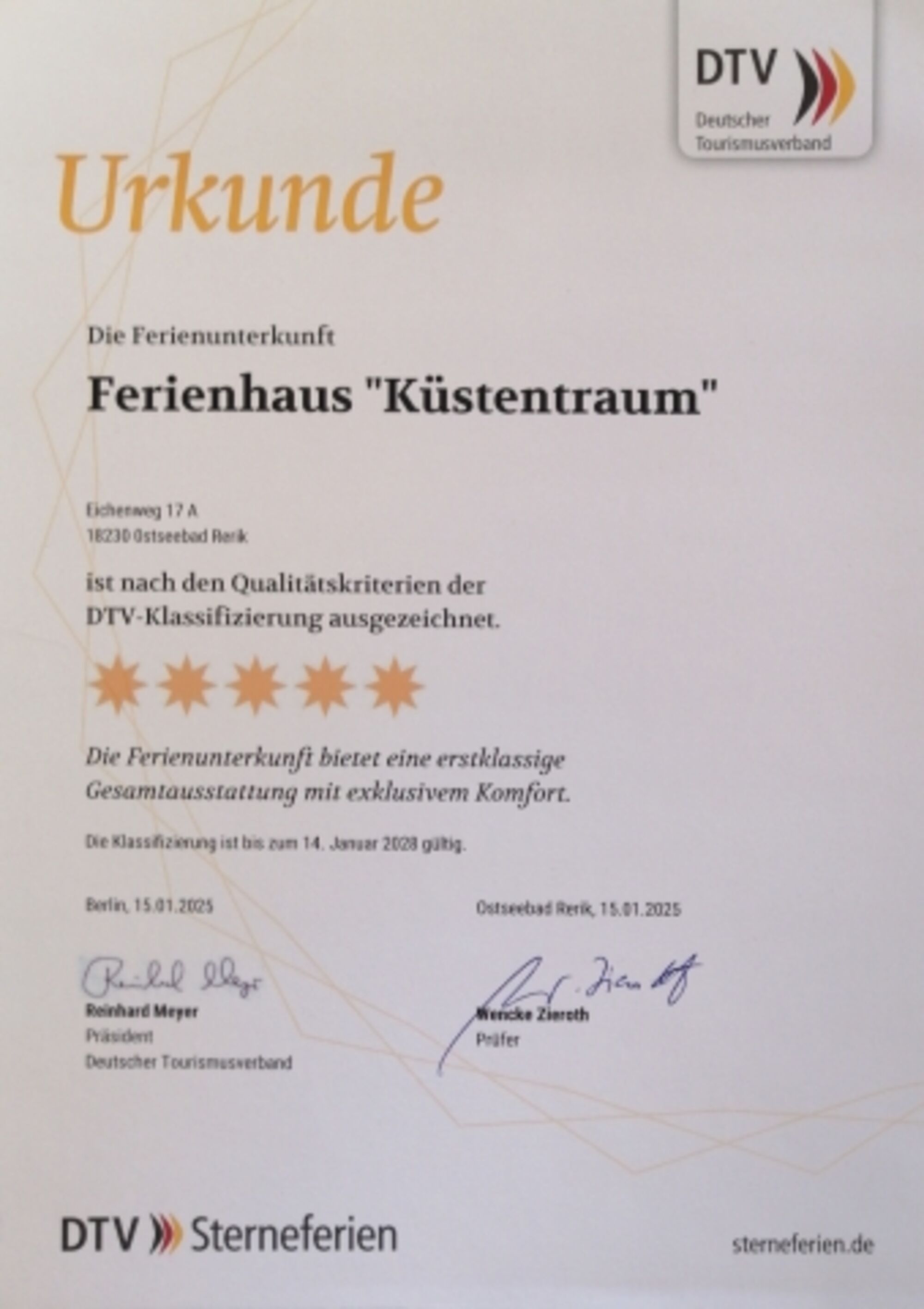 Ferienhaus Küstentraum in Rerik Sterne nach DTV: F