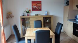 schönes Eßzimmer, Bad, Abstellraum mit Waschmschine und Bügeleisen.