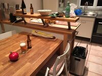 4-Platten Herd, Cerankochfeld, Kühlschrank mit Gefrierfach, Nespresso-Automat, Mixer, Korkenzieher / Flaschenöffner, Gewürze (Salz, Pfeffer, Zucker), Geschirrhandtücher, Mülltüten, Essplatz in der Küche