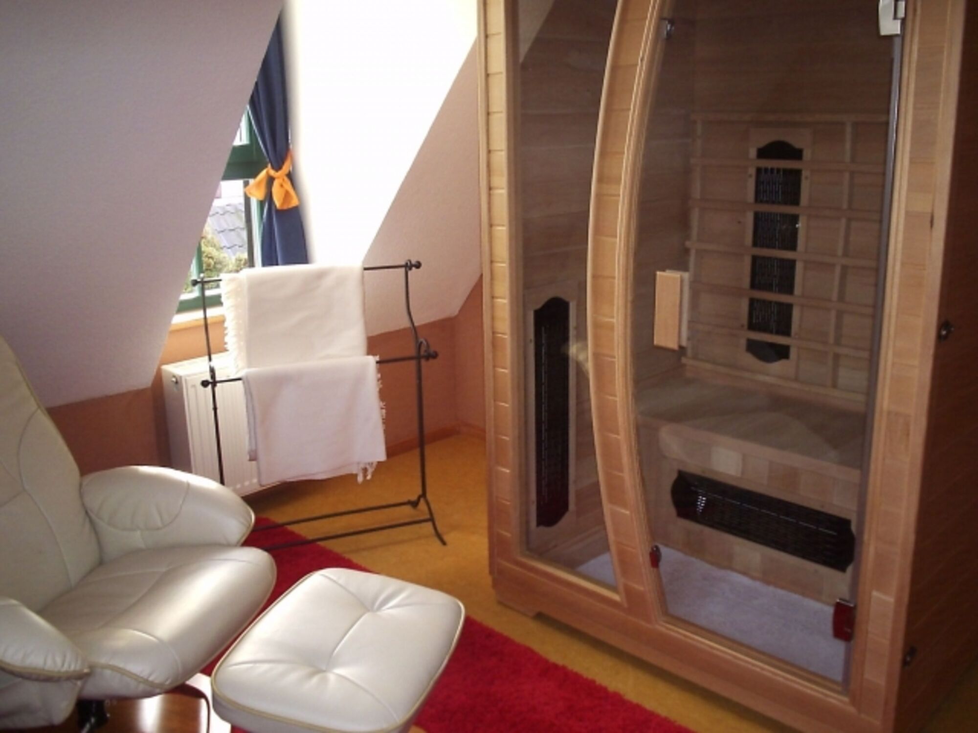 Sie finden einen separaten Wellnessraum vor - ausgestattet mit Büchern, 2 Massagesesseln, Leselampe, INFRAROTKABINE. Dieser Raum steht Ihnen natürlich ständig zur Verfügung, da er sich ja innerhalb der Wohnung befindet.