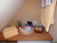 | Sie über sich: | Wir selber wohnen im Erdgeschoß, der gesamte Gästebereich ist im 1. Geschoß. Gerne betreuen wir unsere Gäste und sind immer für sie da. Wir sind große Hundefreunde und halten im EG auch eine Warmwasser-Hundedusche bereit. |