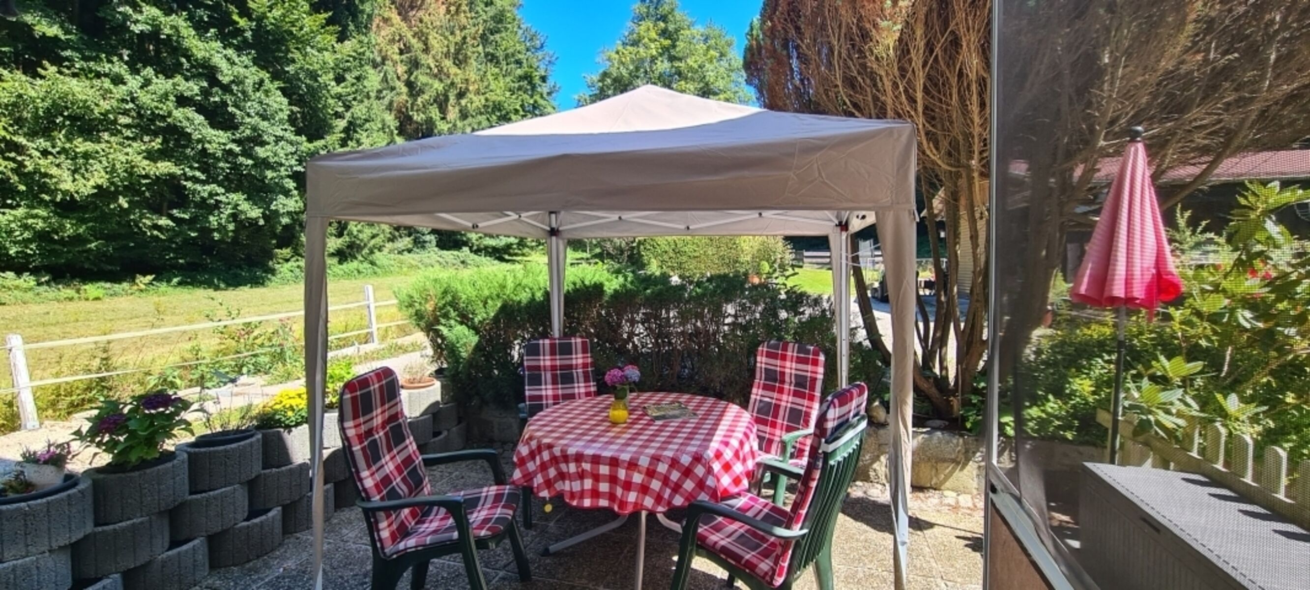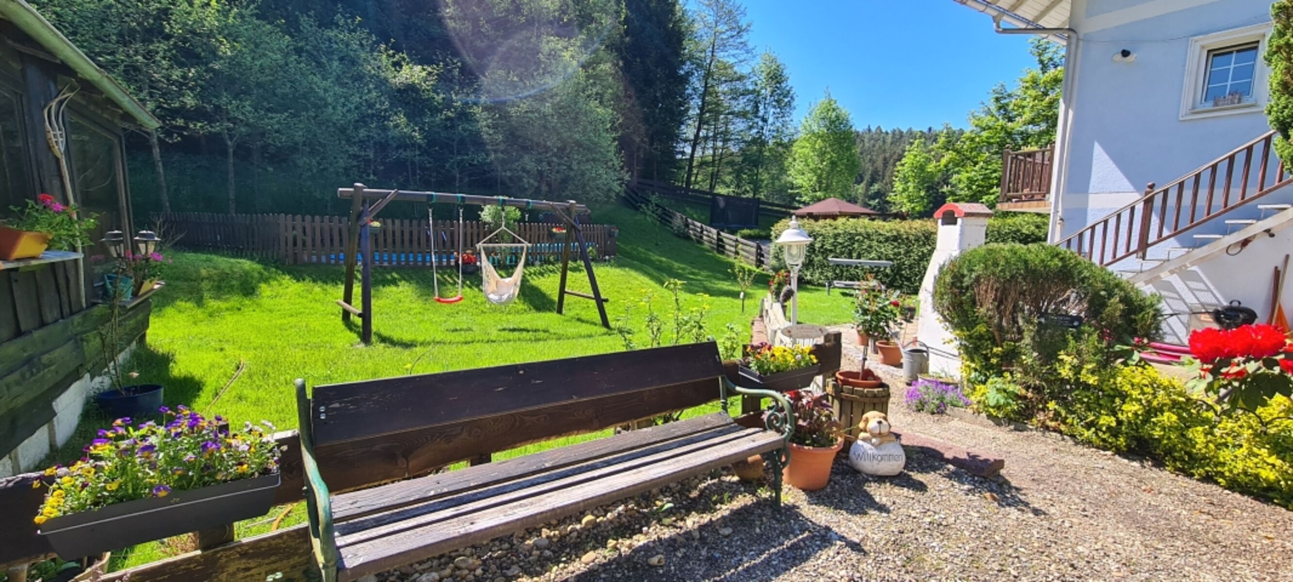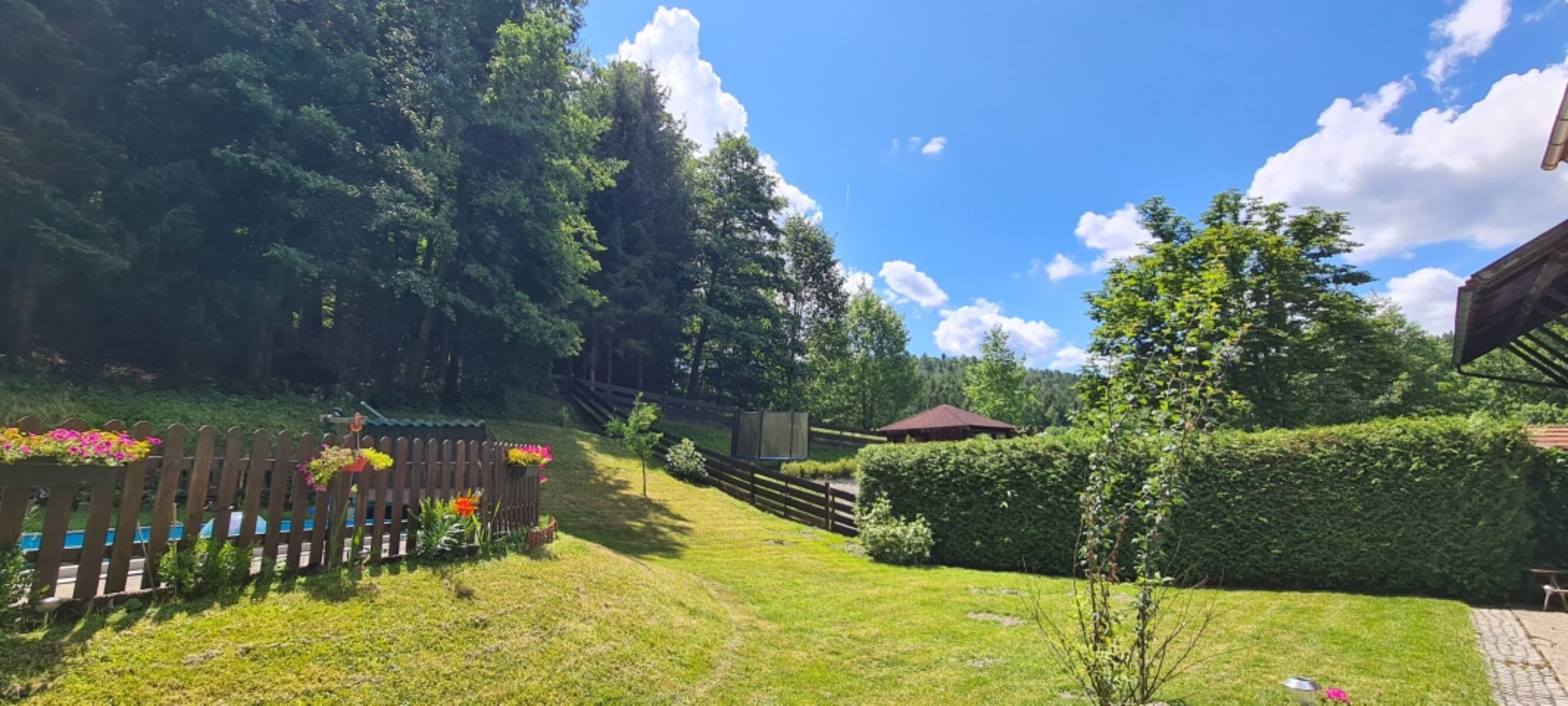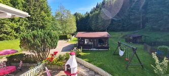 Das Grundstück zur Ferienwohnung erstreckt sich über 4000qm und ist im Wald eingebettet.