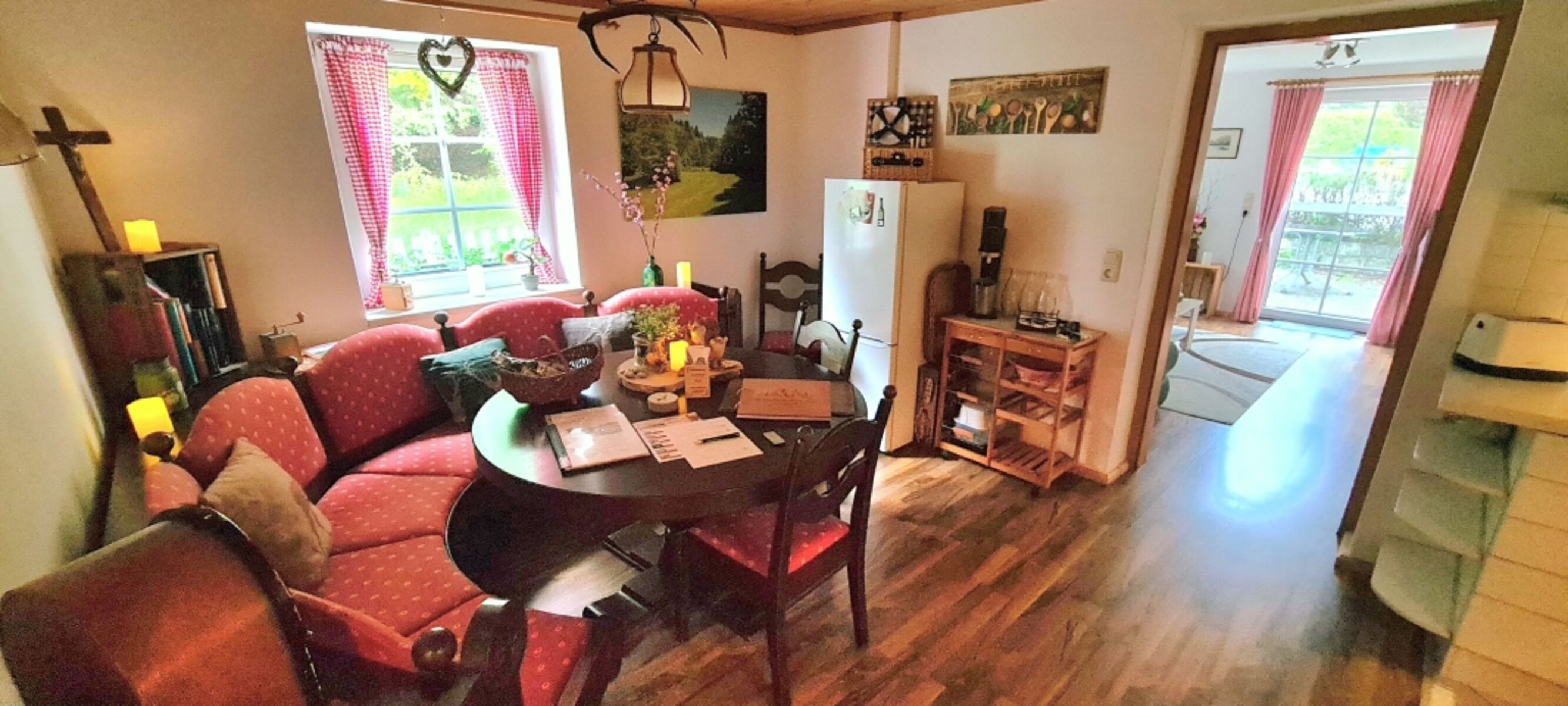 Die Wohnung befindet sich im Erdgeschoß unseres Hauses, in dem wir selber den oberen Teil des Hauses bewohnen. Die Wohnung verfügt über einen eigenen Eingang.