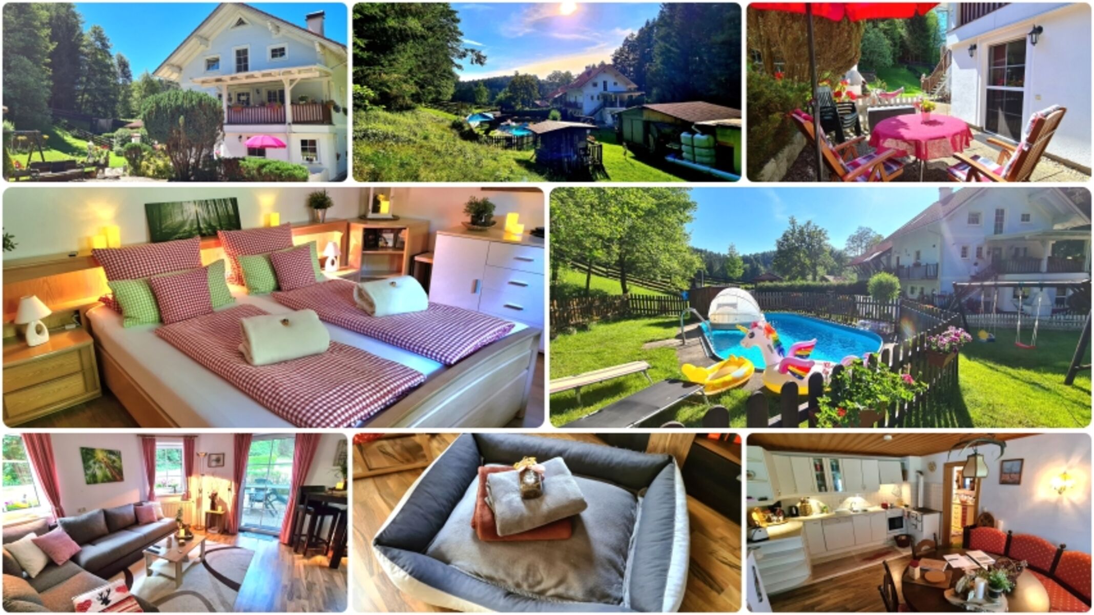 Als Highlight für Euch Zweibeiner haben wir im Garten der Ferienwohnung auch noch einen großen Wald Swimmingpool 8x4m, im Waldhang eingelassen, den ihr natürlich je nach Wetterlage im Sommer (ab ca. Ende Mai/Anfang Juni -September Open End) mit benutzen könnt. Sonnenschirme, Liegestühle, Family Schwimminsel, Luftmatratzen, Wasserbälle haben wir alles für Euch da.