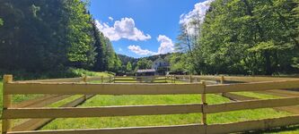 Seit Mai 2024 mit eingezäuntem Bereich im mittleren Teil der Weide, unsere "Sorglos Watzewiese" mit Hundepool im Sommer auf Wunsch.