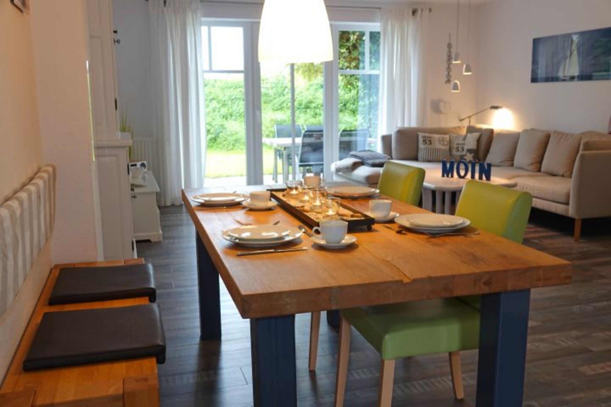 Die Innenräume im maritimen Stil sind durch die grossen Glassfronten sehr hell und freundlich.