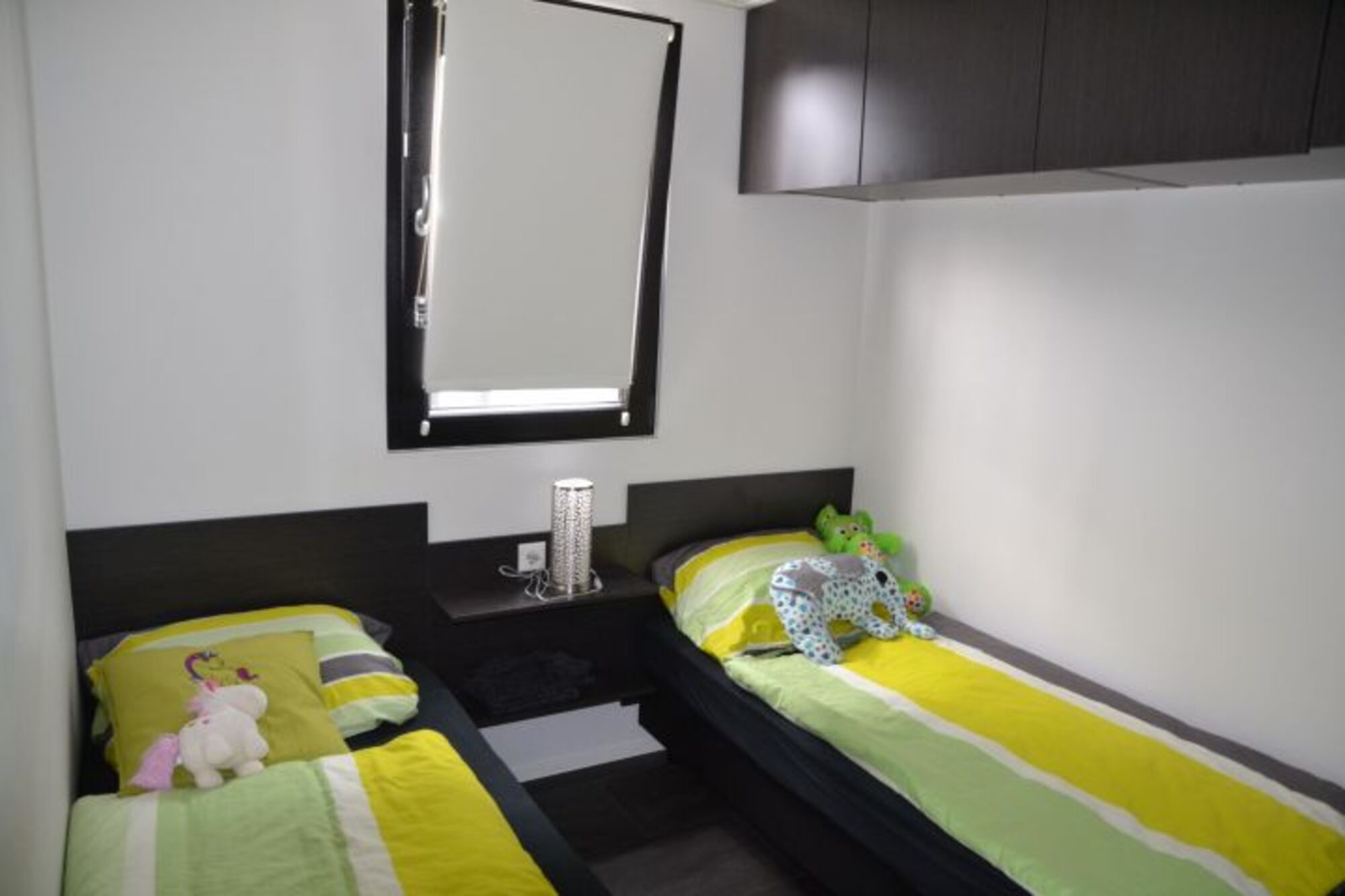 In den Schlafzimmern befinden sich ebenfalls solche Schutzgitter vor den Fenstern.