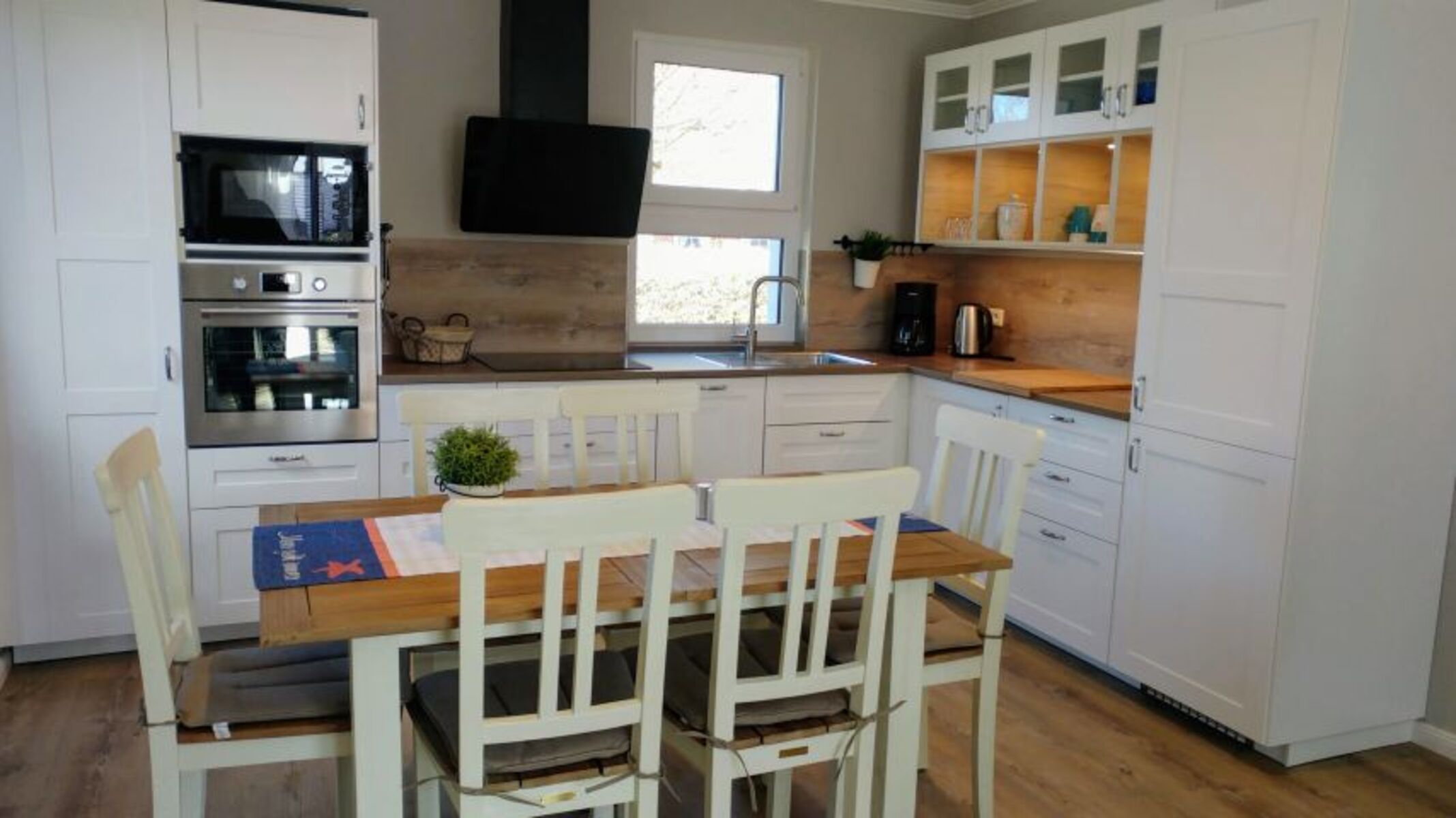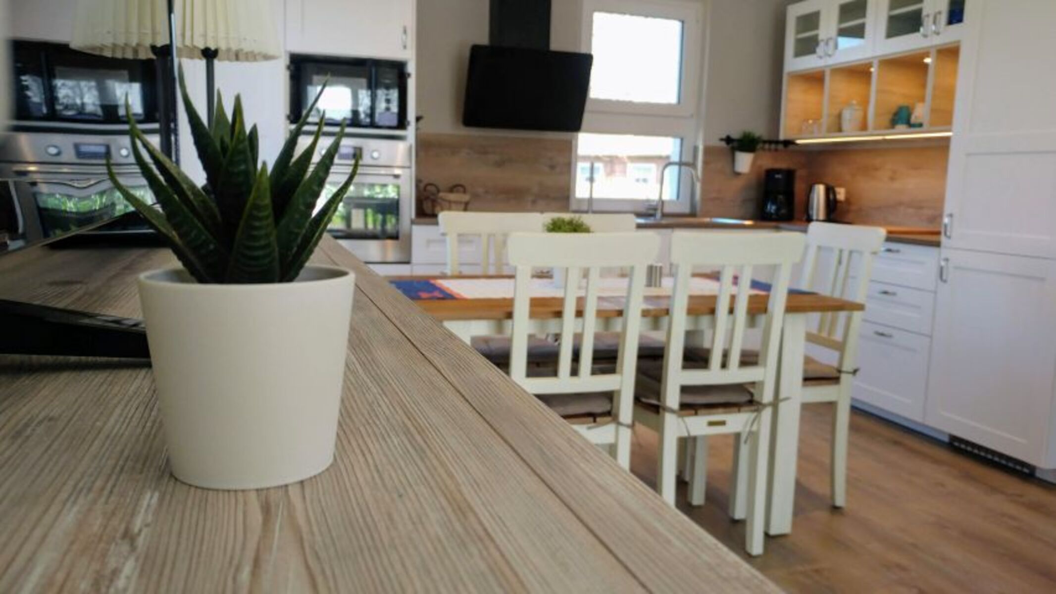 Der helle, einladende Wohn-und Essbereich mit offener Küche lädt Sie zum gemütlichen Beisammensein und Kochen ein.