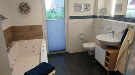 Mit drei geräumigen Schlafzimmern bietet es Platz für bis zu 6 Personen + Kleinkind. Das größere der beiden Bäder bietet eine Whirlpoolwanne mit Lichttherapie zum relaxen und eine ebenerdige Dusche.
