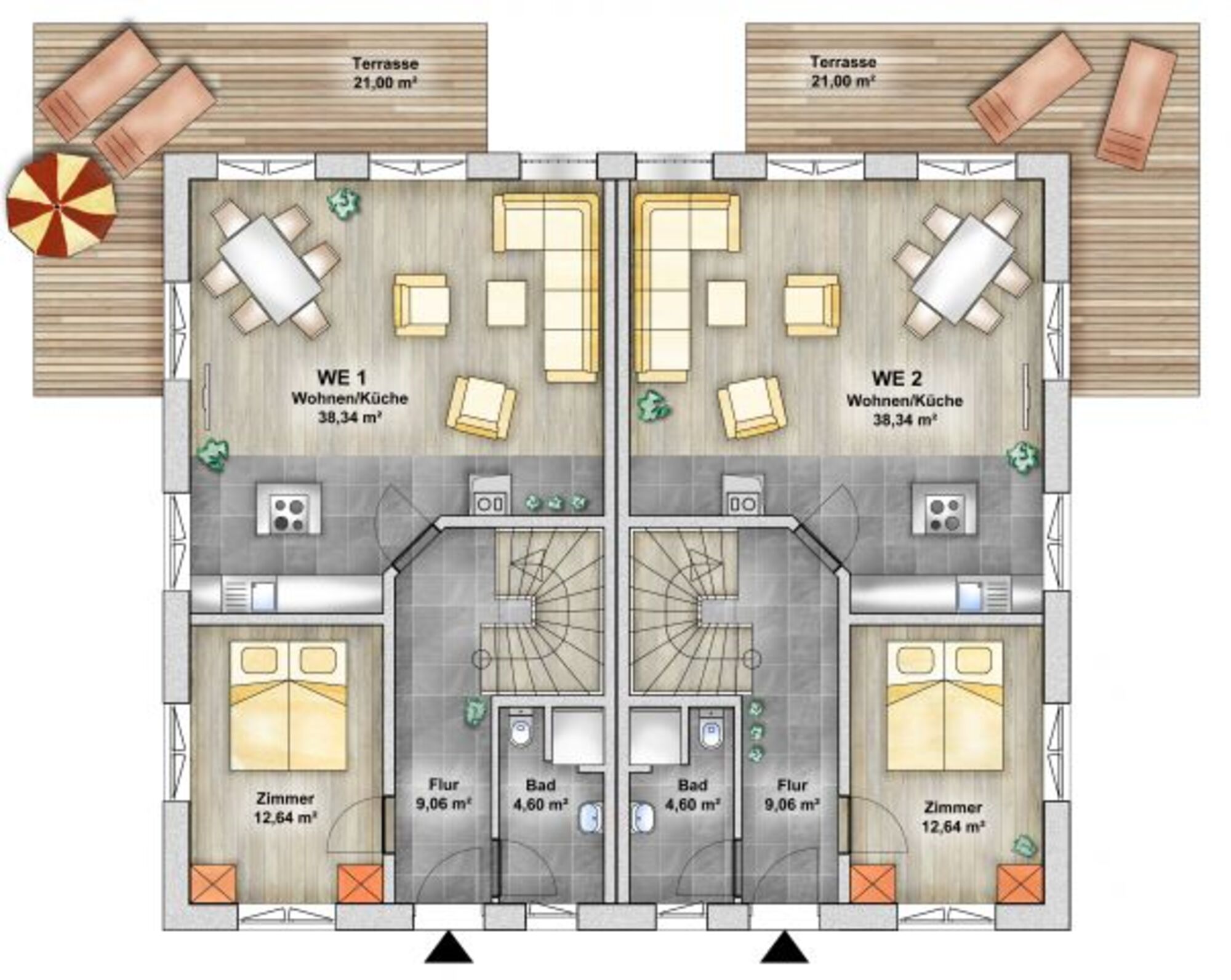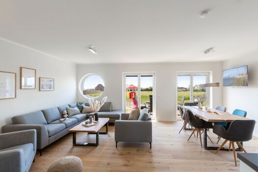 Die DHH wird modern und exklusiv eingerichtet und verfügt über einen großen Wohn- / Essbereich mit schönen Sitzgelegenheiten, einen großen Esstisch sowie einen SAT-TV und Kaminofen.
