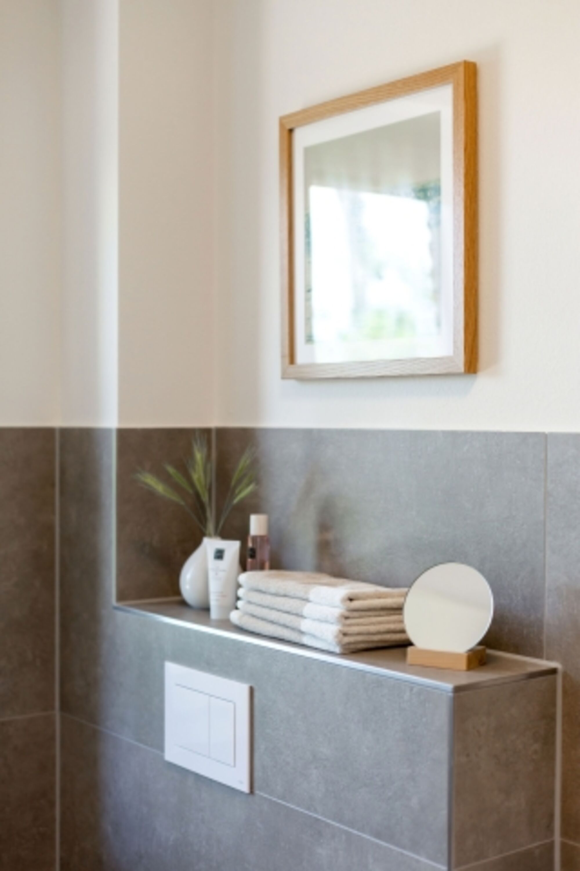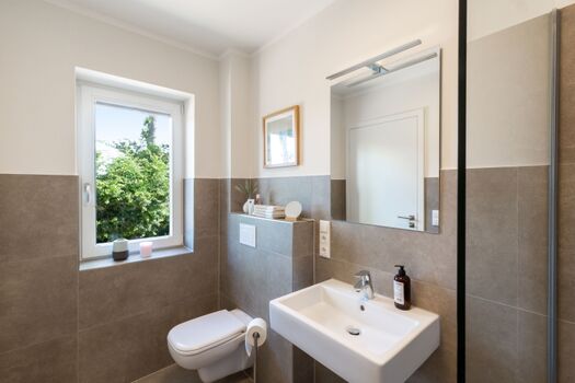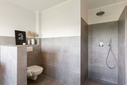 Im Erdgeschoss befindet sich ein Duschbad mit ebenerdiger Dusche und Waschmaschine.