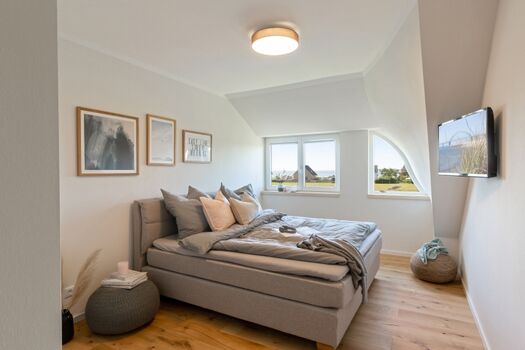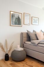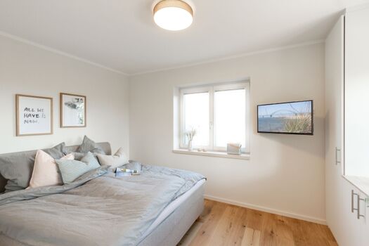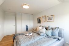 In der DHH finden Sie drei Schlafräume, welche jeweils mit einem Boxspringbett (es werden große Bettlaken 180 x 200 cm benötigt!) ausgestattet sind. Ein Schlafzimmer befindet sich im Erdgeschoss (Seniorengerecht), zwei weitere Schlafzimmer sind im Obergeschoss.