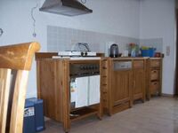 4-Platten Herd, Gasofen / Gasherd, Kühlschrank mit Gefrierfach, Korkenzieher / Flaschenöffner, Mülltüten, Essplatz in der Küche, TV in der Küche