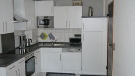 Cerankochfeld, Dunstabzugshaube, Kühlschrank mit Gefrierfach, Korkenzieher / Flaschenöffner, Essplatz in der Küche