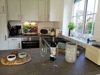 Geschmackvoll mit viel Liebe zum Detail eingerichtetes Ferienhaus mit sehr gepflegtem Ambiente bietet 4 Personen (+ 1 Baby) sowie bis zu 3 Hunden ein traumhaftes Zuhause im Urlaub. Ankommen und Wohlfühlen: Eine sehr gut ausgestattete Küche mit Spülmaschine sowie Waschmaschine und eine Hundeausstattung mit Hundebettchen und Näpfen bietet Ihnen und Ihren Vierbeinern viel Komfort für einen gelungenen Urlaub! Entspannen Sie im Strandkorb auf der Sonnenterrasse des eingezäunten Grundstückes (500m²), während Ihre Vierbeiner im Garten spielen. Nach einem Strandspaziergang verbringen Sie einen gemütlichen Abend im Stressless-Sessel vor prasselnden Feuer im Kaminofen oder in der geräumigen Sauna. 2 Flatscreen TVs, WLAN sowie Bücher und Spiele runden das Unterhaltungsprogramm ab.