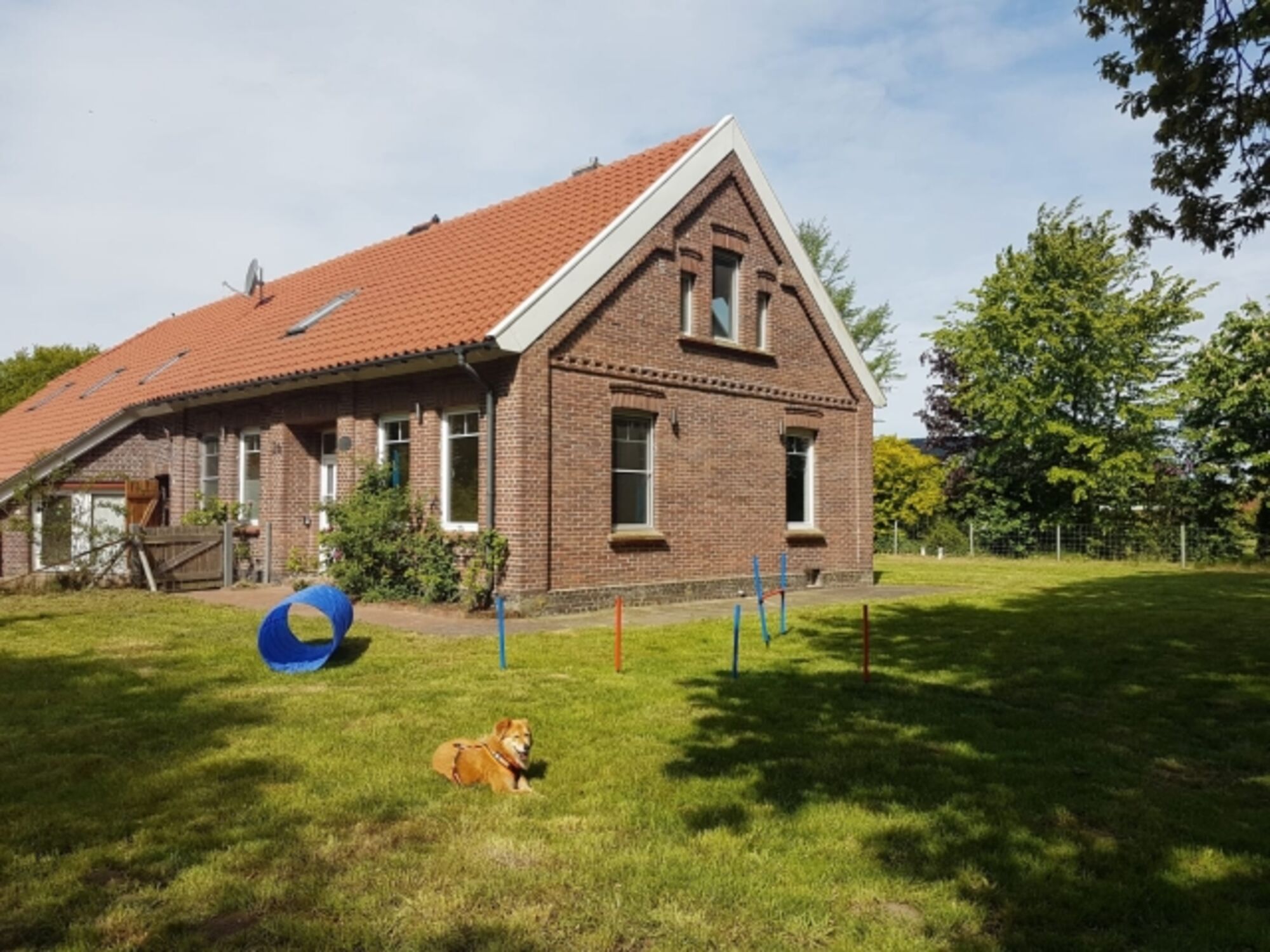 Eine hochwertige Küche, komplett eingezäunter Garten mit Agility Elementen, Grill und Gartenmöbeln sowie ein Kamin helfen, die Seele baumeln zu lassen. Mit einer 2-Personen-Whirlpoolbadewanne, einer Regenfalldusche sowie einer geräumigen Sauna kommt auch der Wunsch nach Wellness nicht zu kurz. Eine kleine Bücherecke sowie Spiele für schlechtes Wetter runden das Angebot ab.