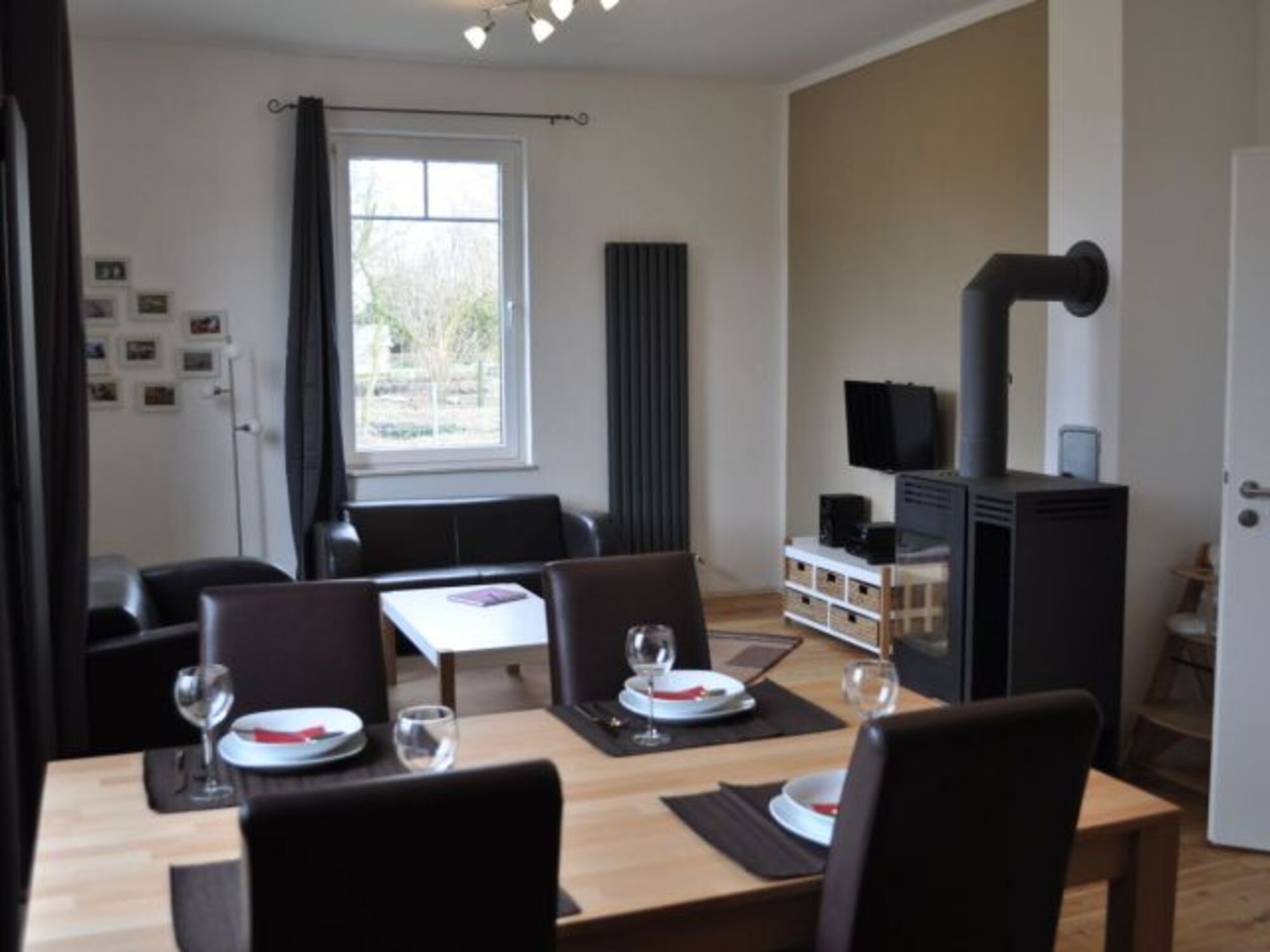 TV, TV-Sat, HDTV Flachbildschirm, DVD-Player, CD-Player, Kaminofen, 3er-Sofa, Fliegengitter