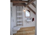 Neues Leben durften wir in unser Küsterhaus aus dem 19ten Jahrhundert einbringen. Die freiliegenden Deckenbalken und hohen Räume erzeugen eine gemütliche Atmosphäre - gepaart mit der modernen Einrichtung ist dies der ideale Ort für Erholung.