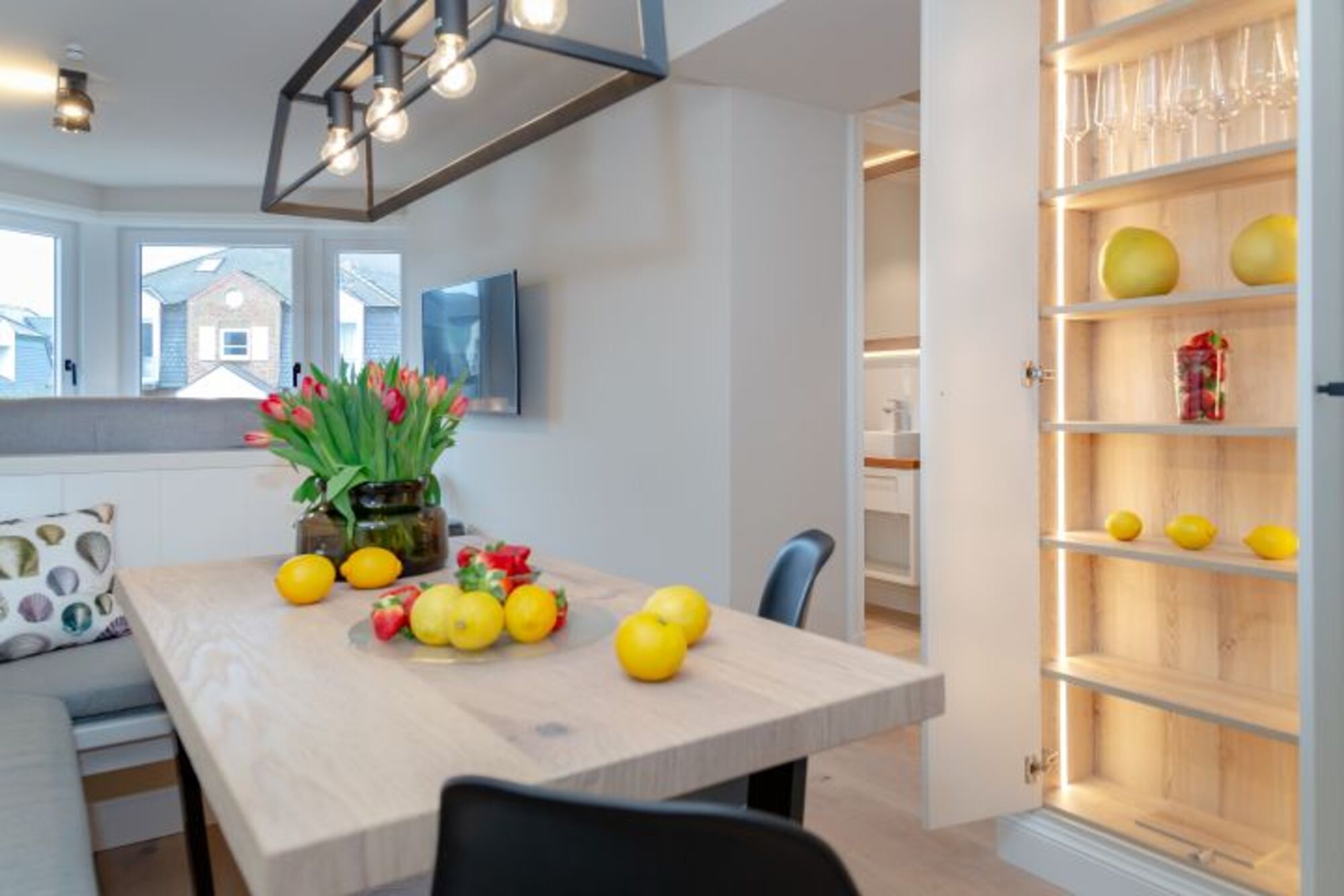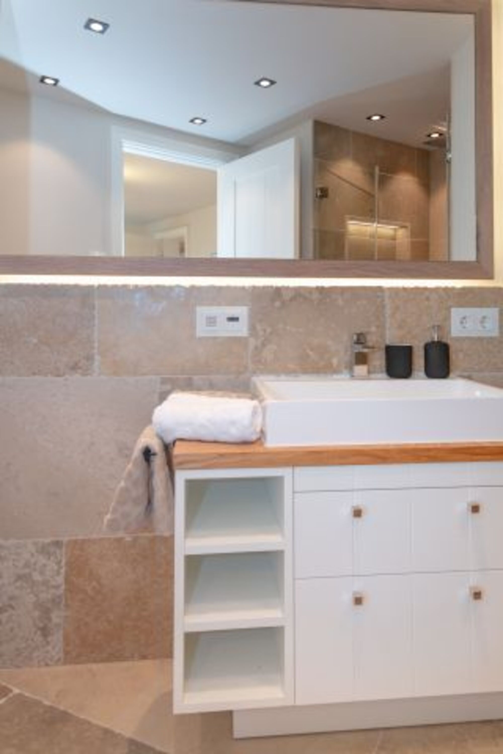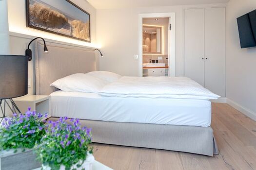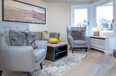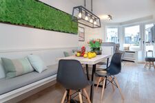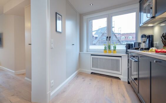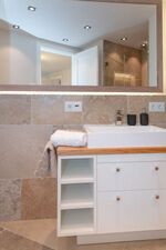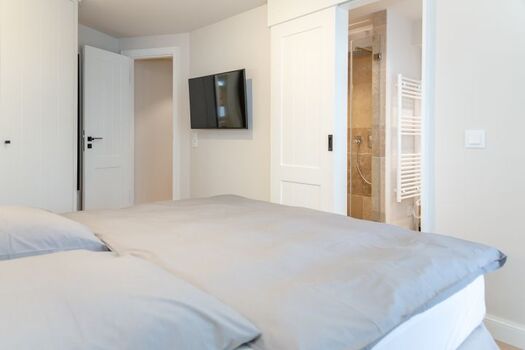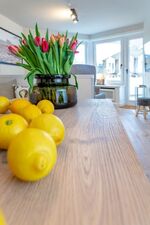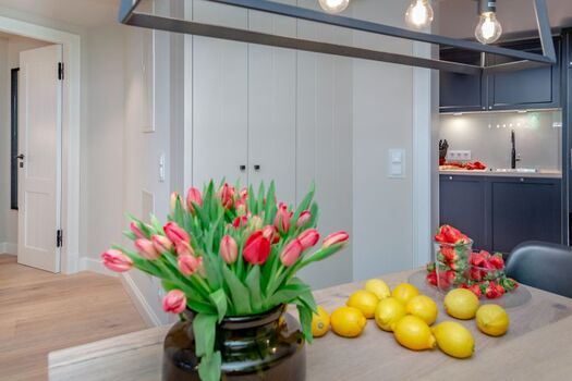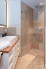Die exklusiv gestaltete Wohnung verfügt über eine hochwertig eingerichtete Küche, die keine Wünsche offenlässt und die Selbstversorgung im Urlaub zum Vergnügen macht. Verbringen Sie gesellige und gemütliche Stunden im einladenden Wohnbereich, wobei die stilvollen Eichendielen dazu eine wunderbare Wärme ausstrahlen. Dieses Domizil besticht durch die edlen Materialien, aus denen sowohl die Holzeinbauten, als auch die beiden Natursteinbäder mit bodentiefen Duschen und maßgefertigten Waschtischen gestaltet wurden. Finden Sie hier Ihre eigenen kleinen Wohlfühl-Nischen und nächtigen Sie in komfortablen Boxspringbetten, die Ihnen Ihre wohlverdiente Entspannung schenken.