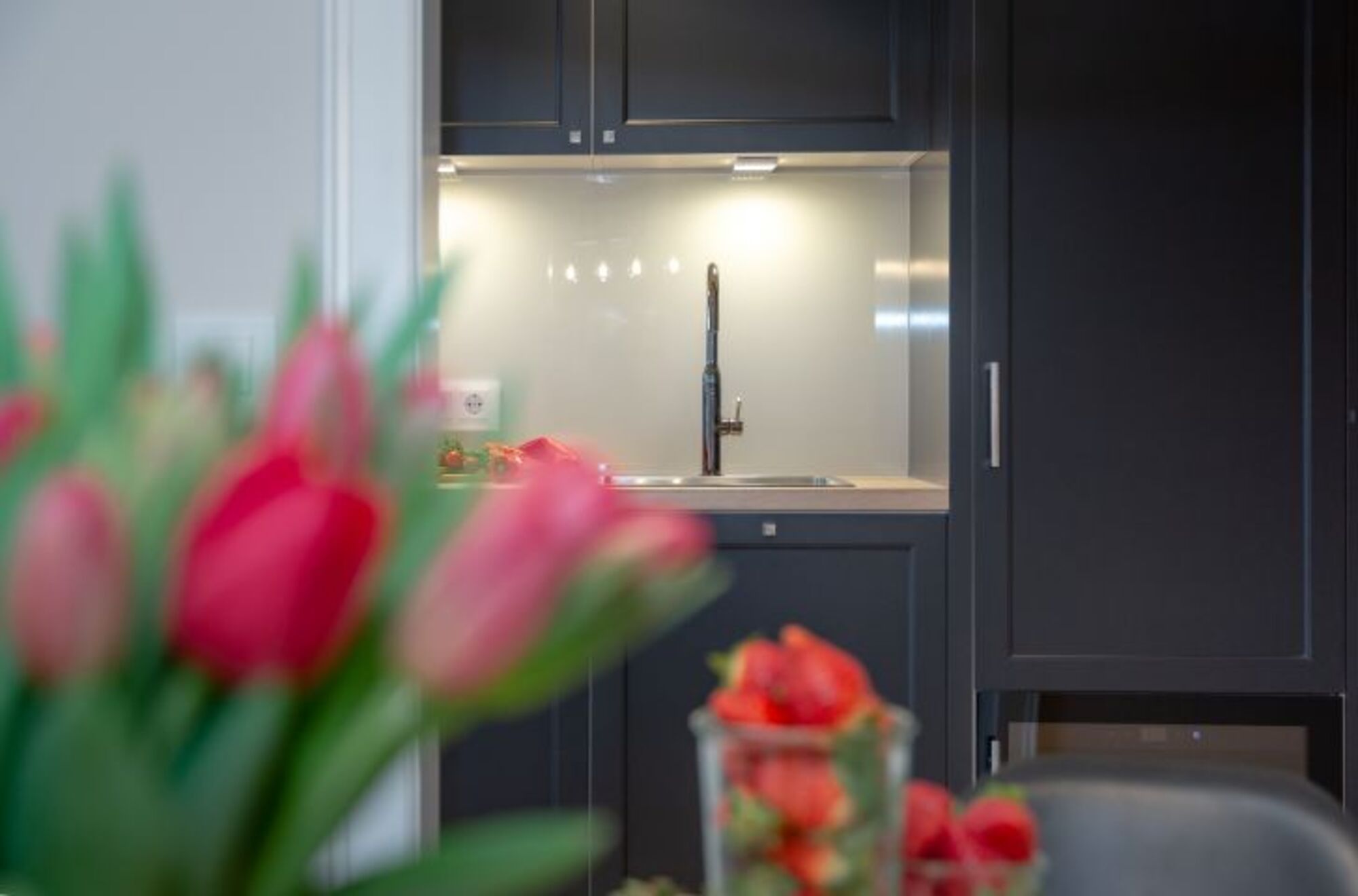 Cerankochfeld, Induktionsherd, Dunstabzugshaube, Kühlschrank mit Gefrierfach, Nespresso-Automat, Eierkocher, Küchenmaschine, Mixer, Korkenzieher / Flaschenöffner, Geschirrhandtücher, Mülltüten, TV in der Küche