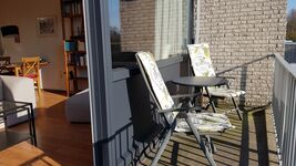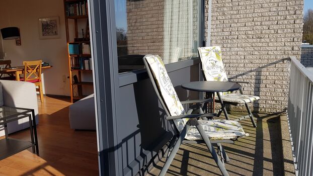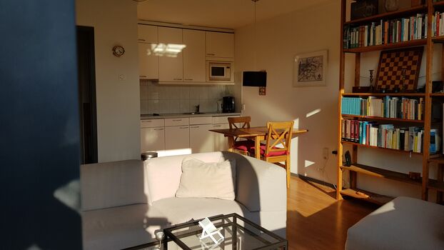 Das geräumige Eckapartment befindet sich im ersten Stock, der über eine Treppe erreichbar ist. Das für 2 Personen geeignete Apartment verfügt über ein Wohnzimmer mit einer komfortablen und großzügigen Sitzecke, in der Sie wunderbar entspannen können. Vom Wohnzimmer aus haben Sie direkten Zugang zum Südbalkon – perfekt, um in den Sommermonaten ein Mittagessen oder ein Getränk zu genießen, das Sie in der offenen Küche zubereiten können.