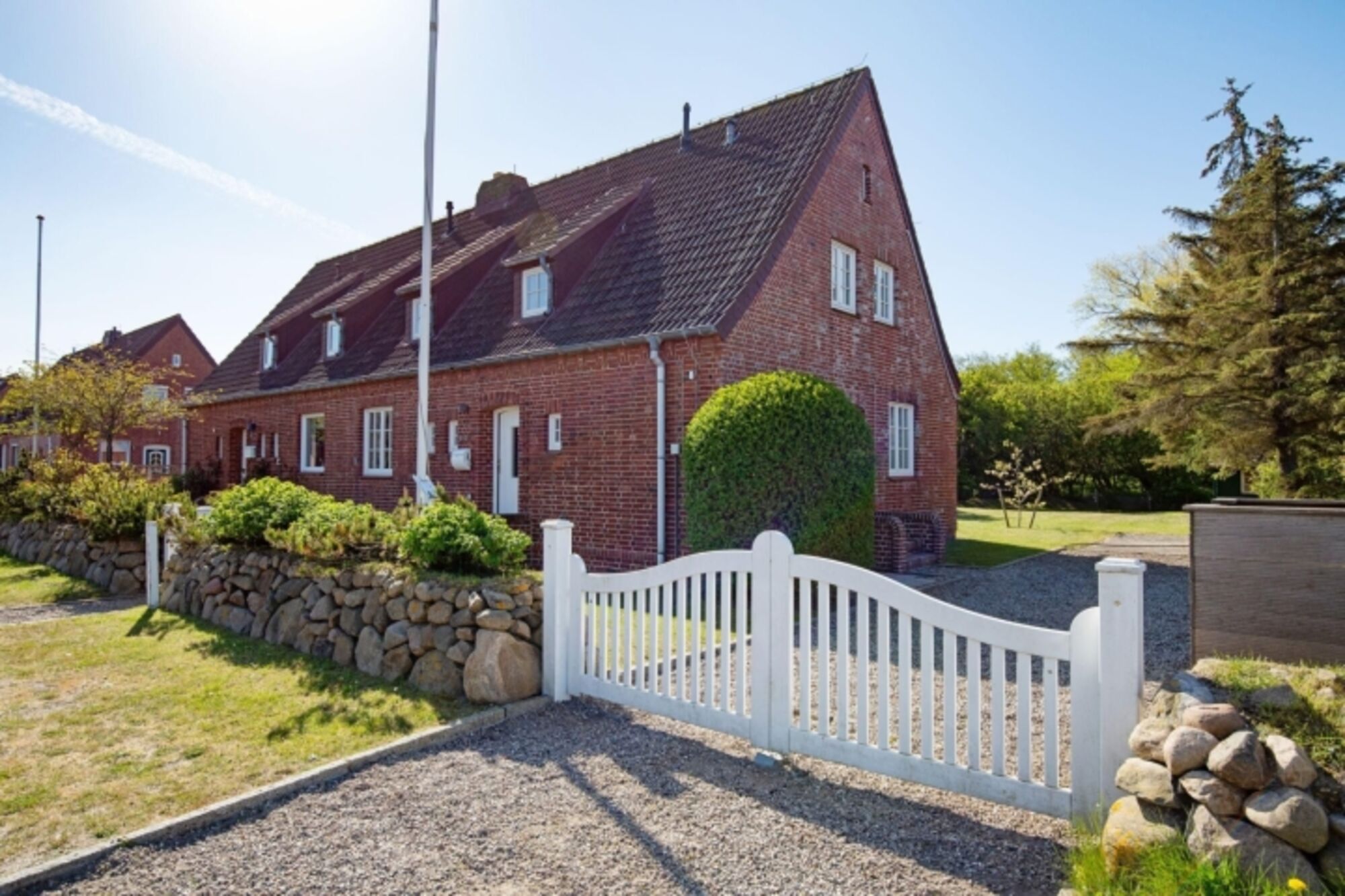 Modernes Ferienreihenhaus unter Reet mit Kamin und großem Garten