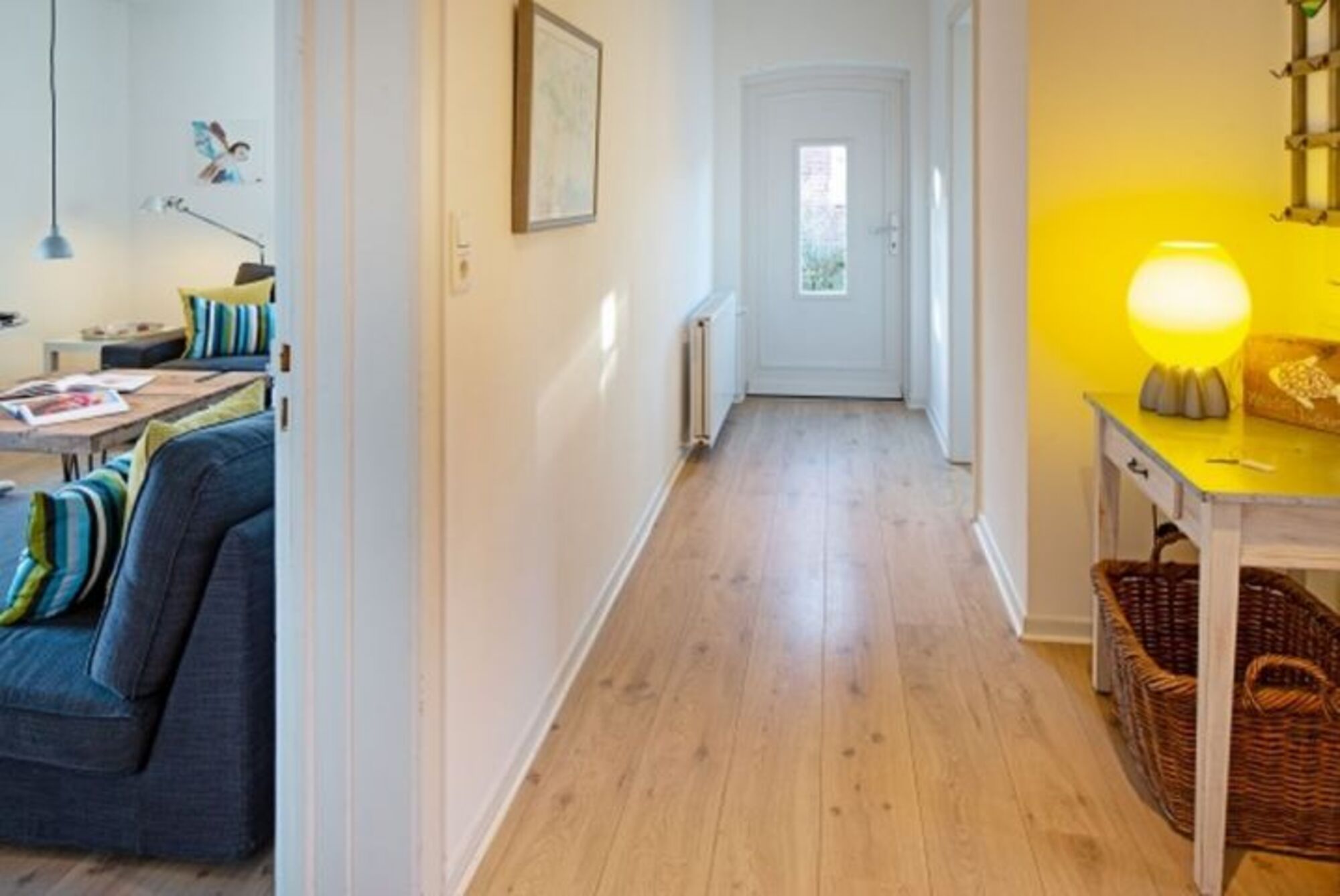 Helles Appartement mit kleiner Terrasse und Strandkorb im Erdgeschoss
