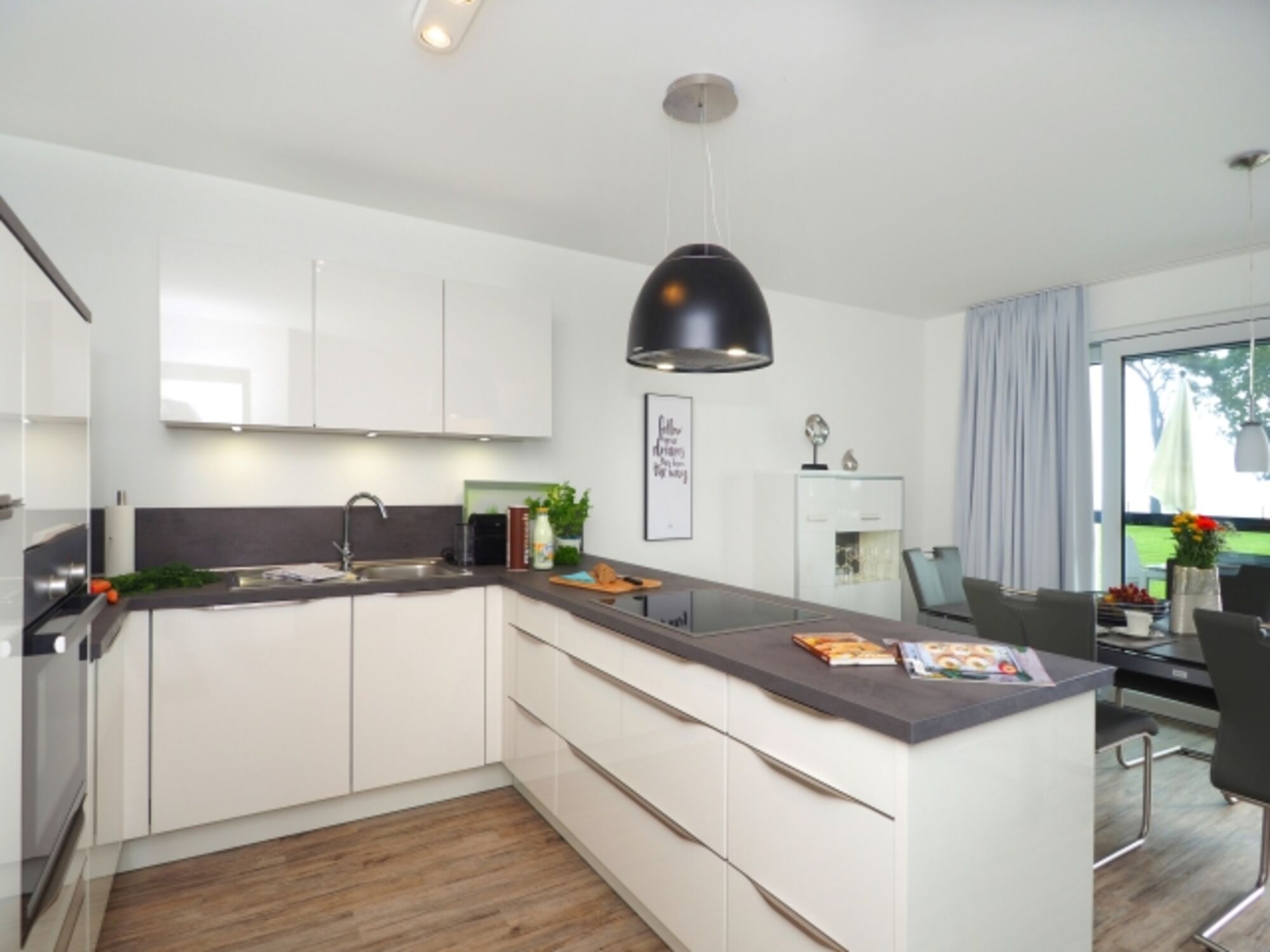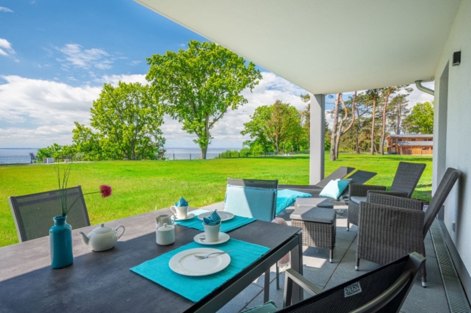 Alle Terrassenwohnungen und Appartements sind mit viel Liebe zum Detail in hochwertiger Luxus-Ausstattung eingerichtet. Von großen Rasenflächen und ebenen Gehwegen umgeben, stehen unsere Ferienhäuser auf die Haffküste ausgerichtet und auf einer weitflächigen Außenanlage zueinander. Unsere Haffterrassen laden mit Sitzgelegenheiten an der Steilküste zum Entspannen bei einem Glas Wein ein.