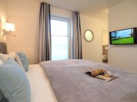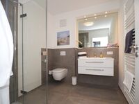 Diese luxuriöse 4-Zimmer-Wohnung im Erdgeschoss mit Platz für maximal 6 Personen verfügt über eine Wohnfläche von 100 m² und hat 3 Schlafzimmer sowie 2 voll ausgestattete Duschbäder. Die große Sonnenterrasse mit 21 m² liegt in idealer Süd-Ausrichtung. Die Wohnung ist modern eingerichtet mit offenem Wohn-Essbereich, großem Esstisch, Ledersofa sowie Smart-TV (inkl. Sky-Abo). Die hochwertig ausgestattete Küche, offen zum Wohnbereich, lässt keine Wünsche offen. Erholsamer Schlaf in den beiden Schlafzimmern mit Boxspringbetten und Smart-TV ist garantiert. Im dritten Schlafzimmer befindet sich ein bequemes Schlafsofa (Liegefläche: 1,60 x 2,00 m), Schreibtisch und Smart-TV. Das Badezimmer en Suite ist mit einer begehbaren Dusche ausgestattet. Auf der großen, überdachten Sonnenterrasse mit Essgruppe und jeweils zwei Relax-Sesseln, Fußhockern, Sonnenschirm und Sonnenliegen können Sie die Seele baumeln lassen.