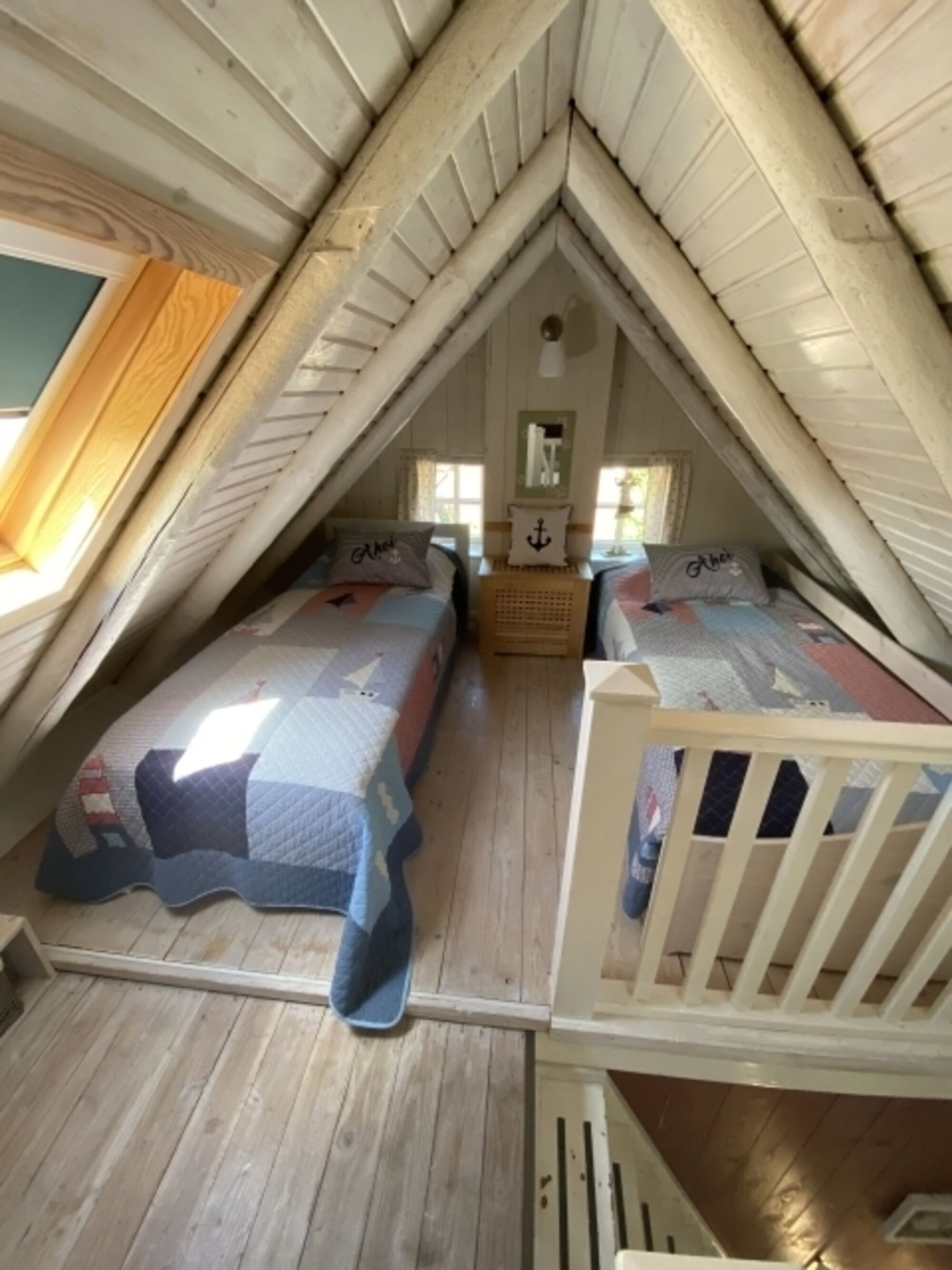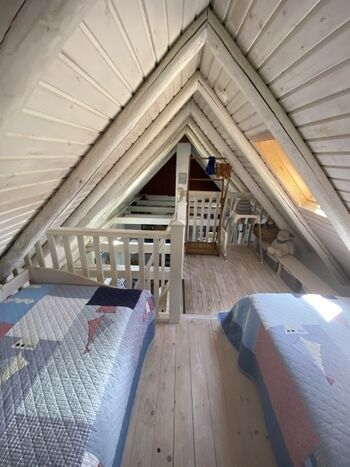 Der "Kleine Mann" ist ein freistehendes Einzelhaus. Das Haus ist durch die offen gehaltenen Holzdecken besonders freundlich und lichtdurchflutet. Es ist im gesamten unteren Bereich gefliest und ebenerdig (auch im Eingangsbereich und der Dusche). Es verfügt über ein Schlafzimmer mit einem Doppelbett, einer offenen Galerie (2 weitere Schlafmöglichkeiten)), einem offenen Wohnzimmer mit einem Kamin sowie einem Fernseher.
