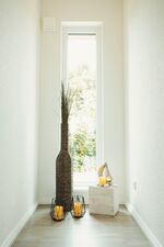 Der Eingangsbereich mit Garderobe, Spiegel und besonders schöner Holztreppe komplettiert das Haus. WLAN steht hier zur Verfügung. Das Ferienhaus "Osteehus Hohwacht" ist eine Doppelhaushälfte und verfügt über einen Garten mit Terrasse. Die Gartenmöbel und der Sonnenschirm machen das Verweilen im Freien angenehm. Parkmöglichkeiten auf dem Grundstück bestehen für bis zu drei PKWs.