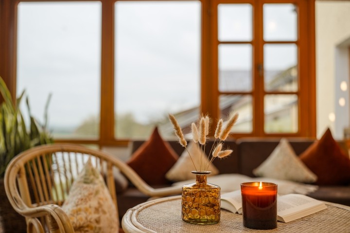 Übernachten Sie bei uns in Holzferienhäusern am Flussufer mit Kamin, großer Terrasse, Balkon, kleinem eingezäunten Garten und eigenem Hot Tub oder in einer von sieben gemütlichen Ferienwohnungen mit romantischem Kreuzgewölbe.