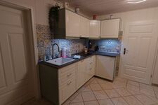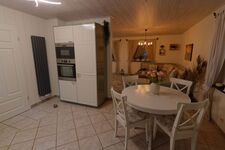 Die Einbauküche ist mit vielen Details ausgestattet, die selbst Profiköche überzeugt. Sie verfügt über Induktionskochfeld, Backofen, Mikrowelle, Geschirrspüler sowie eine Gefrierkombination. Vom Esstisch blicken Sie in den Garten mit Terrasse. Hier können Sie den Freiraum genießen und in Ruhe im Strandkorb die jodhaltige Nordseeluft einatmen, sich ausruhen, entspannen und selbstverständlich grillen, während die Kinder und Hunde auf der großzügigen Rasenfläche spielen und toben.