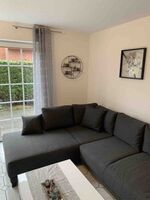 Vom Flur aus können Sie zunächst ein Gäste-WC, einen Abstellraum oder die Treppe nach oben zu einem Duschbad und den beiden Schlafzimmern erreichen. Der Flur geht über in ein helles, geräumiges Wohnzimmer. Ans Wohnzimmer schließt sich die Sonnenterrasse an. Integriert ist eine voll eingerichtete Küche mit Essecke.