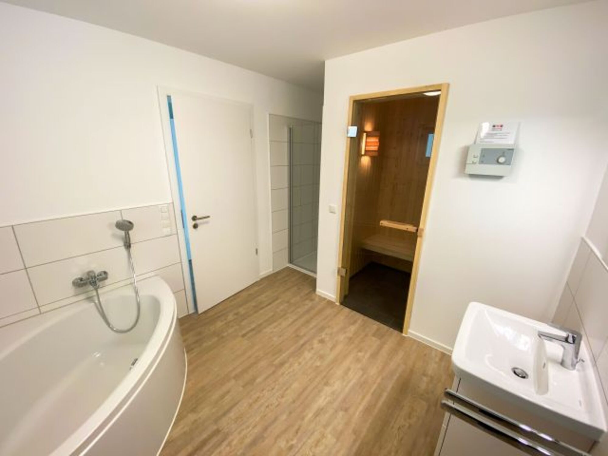 Das große Vollbad verfügt über eine Sauna und kann somit schnell zum Wellnesstempel werden!
