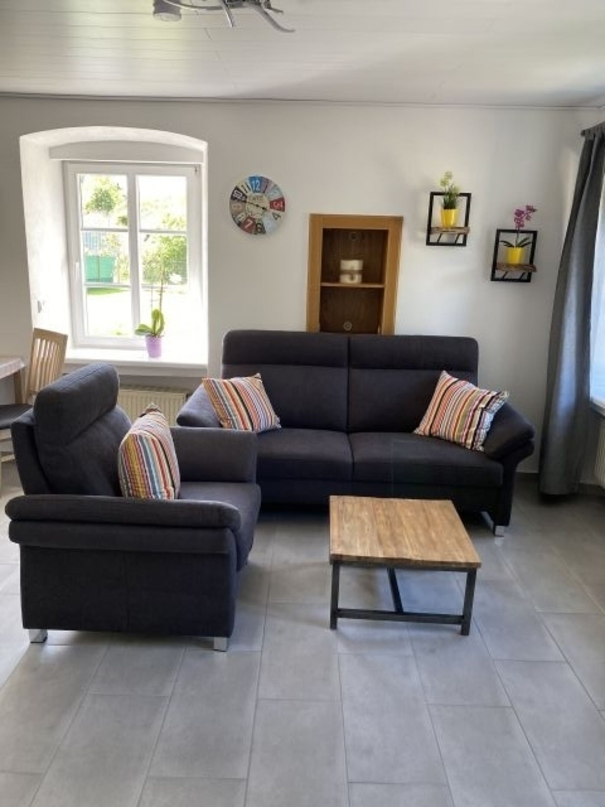Gemütliche Fewo, eingezäunte Wiese mit Sitzmöglichkeit