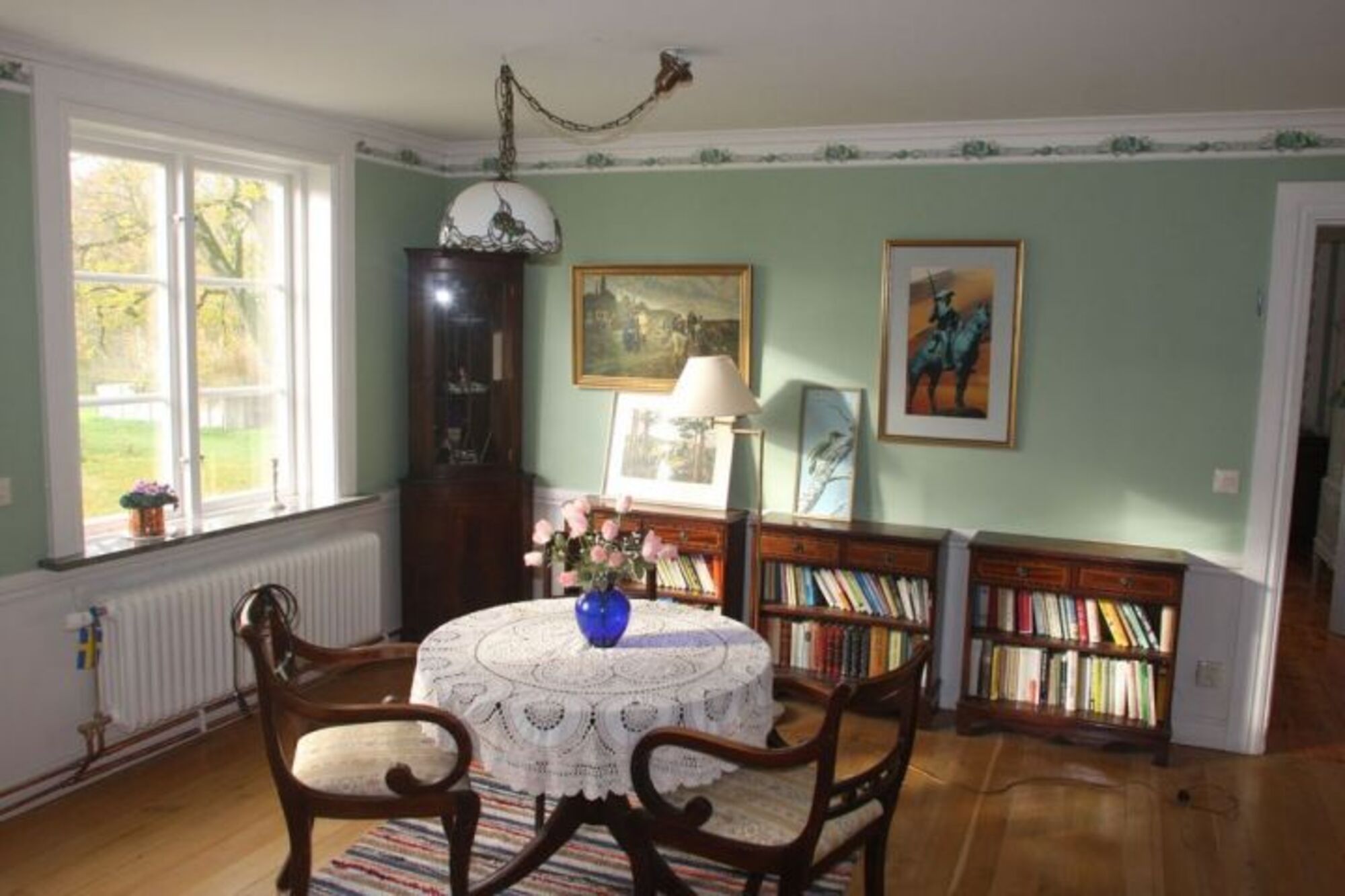 Das Gesamtgrundstück ist ein schönes altes Gut, mit riesigem Garten/Park, wo Kinder frei herumlaufen können. Es gibt auch 2 Gartentrampoline, sowie ein Federballfeld/Volleyball. Sowie ein Fußballtor. Wir haben auch Golfschläger, man kann auf dem Grundstück 1 Loch spielen...zum Üben sozusagen. Wir stellen auch Fahrräder zur Verfügung. Und es gibt Kajaks, die wir gegen eine kleine Gebühr verleihen. Am kleinen Fluß in der Nähe, der uns privat gehört, liegen Ruderboote, dort ist auch unsere kleine Hausbadestelle, jedoch nur für Schwimmer geeignet. Auf dem Fluß rudern wir ca. 400m zum See Östen, der sehr malerisch ist und wegen seltener Vögel unter Naturschutz steht. Angeln geht sehr gut, unser Hausmeister fängt große Hechte und andere Fische.
