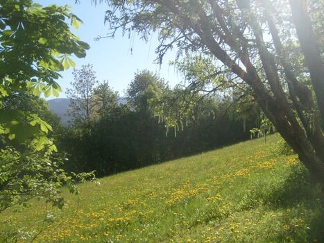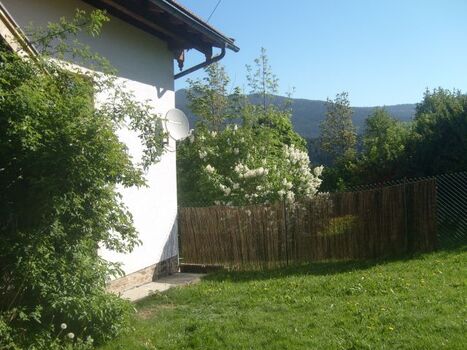 Der Garten ist zu alleinigen Nutzung zugängig und auf 1,60m - 1,80m eingezäunt . Umgeben von Wiesen und Wälder.