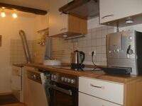 Cerankochfeld, Dunstabzugshaube, Gefrierschrank, Kaffeevollautomat, Tassimo-Kaffeautomat, Mixer, Korkenzieher / Flaschenöffner, Gewürze (Salz, Pfeffer, Zucker), Öl / Essig, Geschirrhandtücher, Mülltüten, Essplatz in der Küche